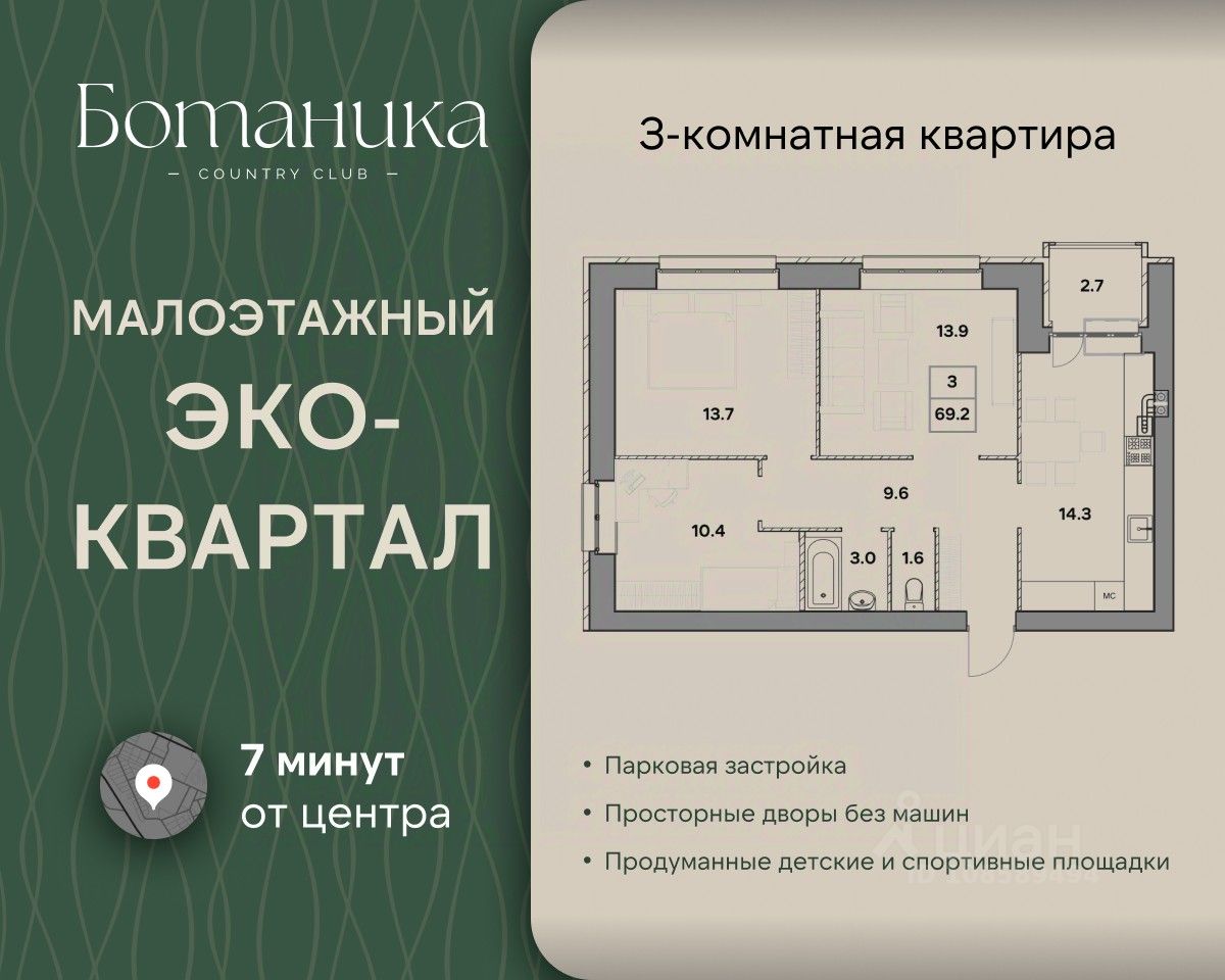 Жилой квартал ''Ботаника'' это островок спокойствия и благополучия посреди шумного города. Наш квартал — новая точка на карте города. И как все новое, он привлекает к себе внимание не только высоким качеством домостроения, но и удачным расположением. Это самый экологически чистый район Ярославля — вокруг сосновый лес и свежий воздух! Квартал обладает отличной транспортной доступностью, всего за пару минут можно пройти к остановке общественного транспорта и быстро добраться в любую точку города. Неподалеку от комплекса пролегают главные магистрали — 10 минут и вы в любом районе Ярославля без пробок! В шаговой доступности есть всё необходимое для комфортной жизни и досуга: супермаркеты, фермерский магазин, Ярославский Зоопарк, озеро ''Техас'' - на его берегу находится памятник природы Смоленский бор. В паре минут располагается Тверицкая набережная реки Волги и вся развитая инфраструктура Заволжского и Кировского районов. Жилой квартал представляет собой комплексную застройку с авторской архитектурой, высокой технологичностью и благоустроенной прилегающей территорией. Организованы детские игровые площадки, спортивный комплекс и отдельная территория для прогулок с домашними питомцами. В каждой квартире установлено индивидуальное газовое отопление, а подъезды оборудованы современными комфортабельными лифтами. Квартира 18