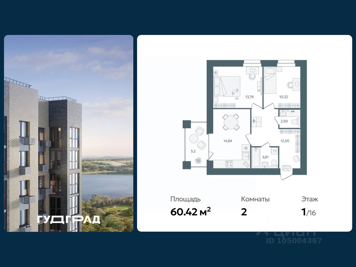 60 м² · Этаж 4 из 16