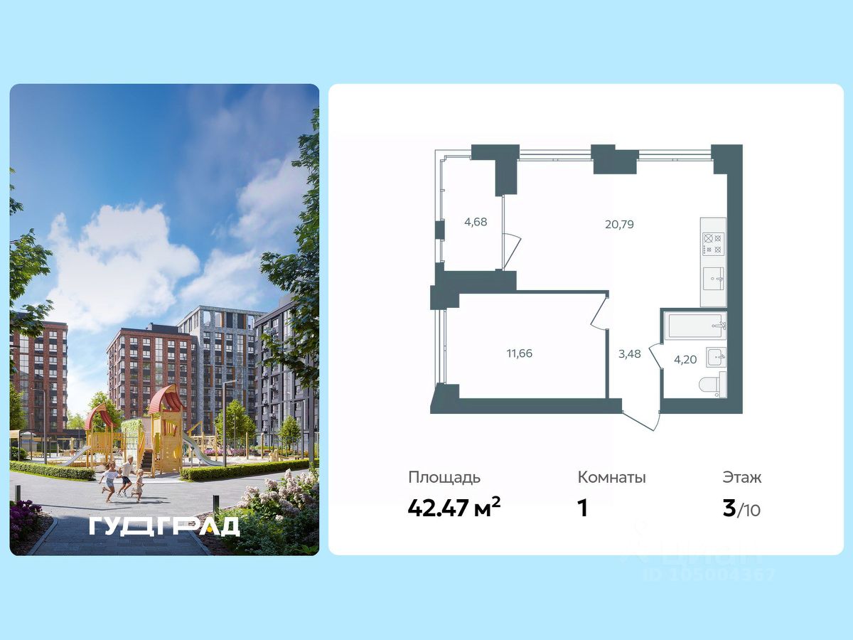 42 м² · Этаж 6 из 10
