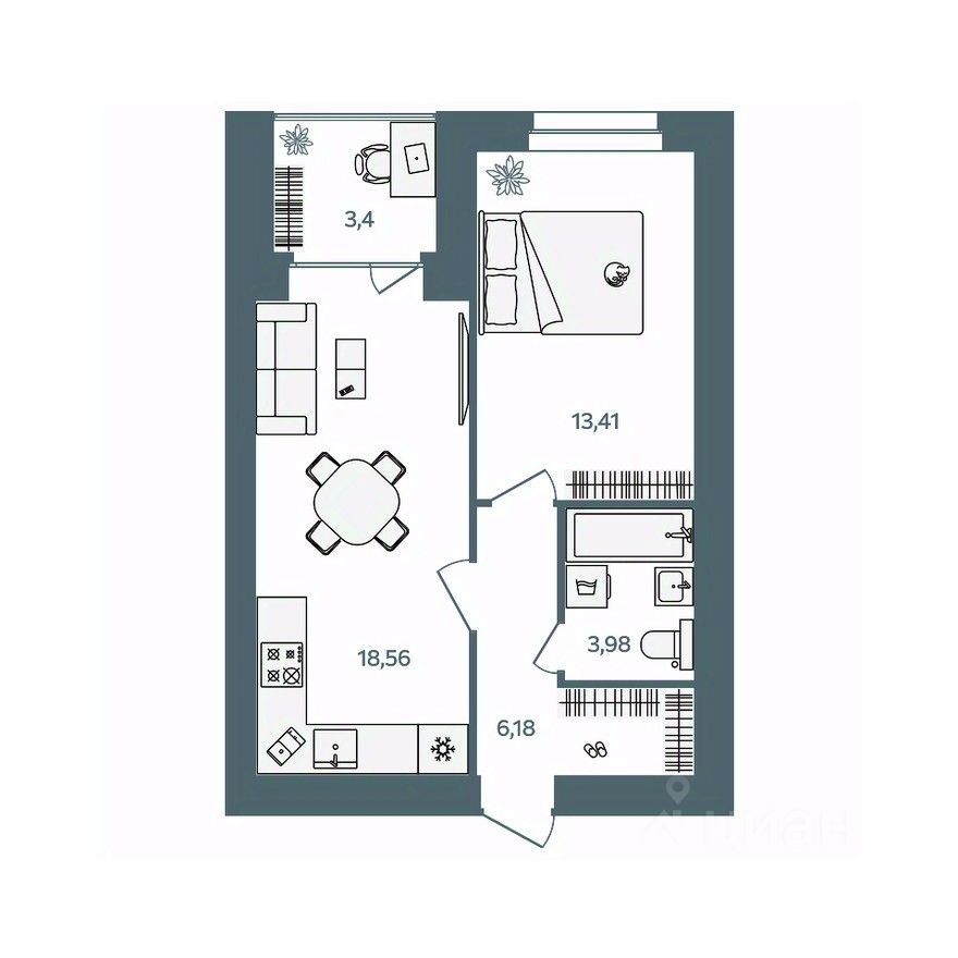 43 м² · Этаж 4 из 16