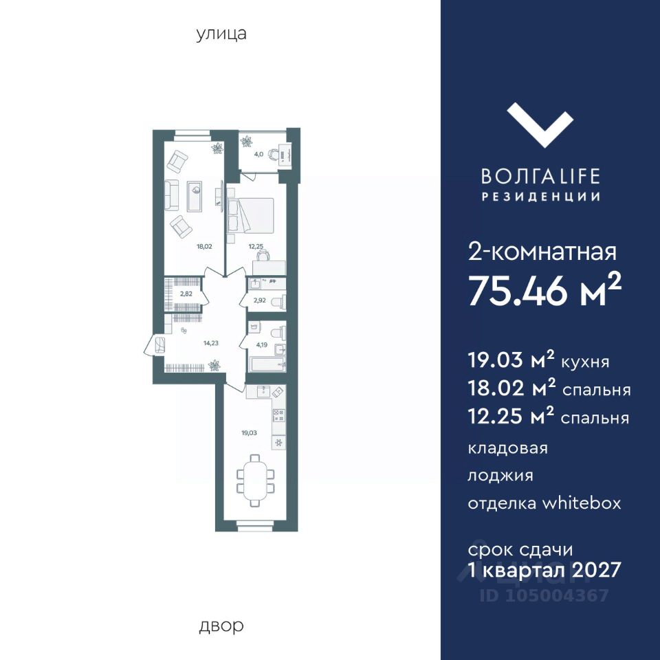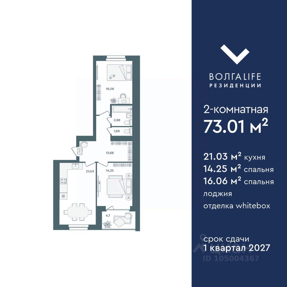 Доступна к покупке с беспроцентной рассрочкой от застройщика просторная двухкомнатная квартира 75,46 м² в новом, современном ЖК из керамического кирпича рядом с Павловским парком. В доме — бассейн, фитнес-клуб. Данные планировки квартир на верхних этажах с видом на Волгу. Выбирая ''Волга Life резиденции'', Вы получите: — квартиры в отделке White-box, по вашему желанию с готовым ремонтом, — значительную экономию на коммунальных платежах, дом отапливается от крышной котельной с индивидуальной регулировкой в каждой квартире, — порядок, чистоту и качество, ведь дом обслуживается управляющей компанией Застройщика, — закрытый безопасный двор без машин, — круглосуточная охрана и видеонаблюдение. — бассейн и фитнес-клуб, не выходя из дома. — благоустроенный парк и берег реки Волги в шаговой доступности Срок сдачи: 1 квартал 2027 года Эту квартиру можно купить в рассрочку от застройщика, без процентов и банков. Первый платеж 30% от стоимости. Доступна в ипотеку по госпрограммам от 4%. Звоните, все расскажем и проведём экскурсию по кварталу!