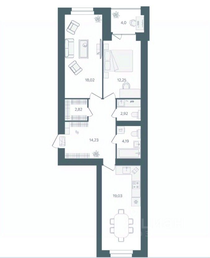 Продаётся 2-комнатная квартира в строящемся доме (Дом 2), срок сдачи: III-кв. 2026, общей площадью 61.4 кв.м., на 3 этаже. 8-и этажный жилой дом располагается по адресу : г. Ярославль, Тутаевское шоссе, д.60, параллельно Тутаевскому шоссе. Дом с несущими стенами из кирпича, с облицовкой керамическим кирпичом. Квартиры обеспечены индивидуальным газовым отоплением и горячим водоснабжением. При планировании участка применена концепция ''двор без машин''.Внутренняя часть двора -благоустроенная территория для занятий спортом, отдыха, игр. В каждой секции дома предусмотрены проходные подъезды, через которые жители дома будут попадать и на дворовую территорию и к дорогам и парковкам, расположенным с внешней стороны. Вход в подъезды с уровня земли. Каждый подъезд дома имеет лифт грузоподъемностью 630 кг. При разработке планировок квартир применяется зарекомендовавшая себя на практике концепция квартиры с большой комнатой, включающей в себя зоны гостиной, кухни и столовой. Эта комната является своеобразным аналогом общественного пространства для членов семьи. Спальни и детские комнаты запроектированы меньшего размера, но с полным учетом всех необходимых функциональных зон и сценариев. Таким образом в каждой, даже однокомнатной квартире есть обособленные дневное общественное и ночное приватное пространства. В цокольном этаже дома будут устроены кладовые помещения для хранения площадью от 5 до 15 кв.м. Попасть в кладовую можно из подъезда. Кладовые предназначены для хранения крупногабаритных вещей: автомобильных покрышек, лыж, санок, велосипедов, детских колясок. Собственная кладовая поможет вам разгрузить вашу квартиру от сезонных вещей, и использовать лоджию и свободное пространство квартиры для уютного отдыха , а не для хранения крупногабаритных вещей. На фасадах домов будут смонтированы короба для установки наружных блоков кондиционеров.