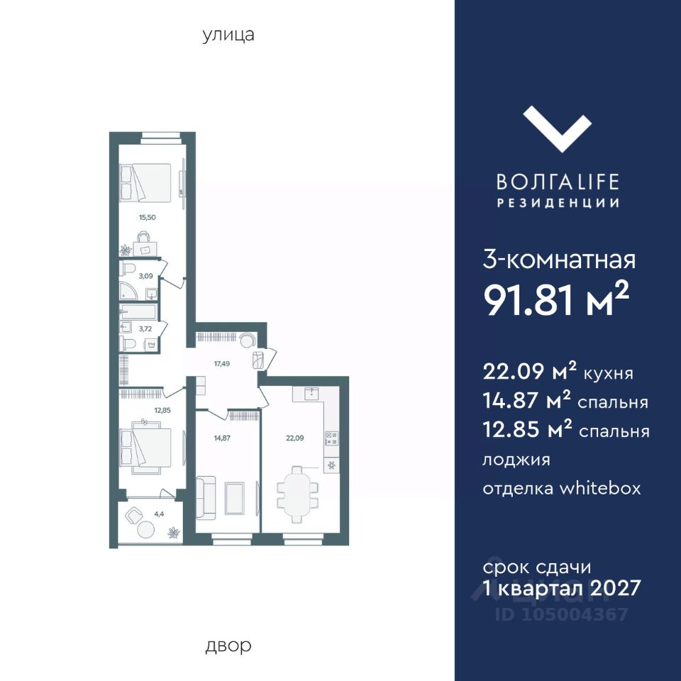 Светлая 3-комнатная квартира 91,81 кв.м. в новом квартале ''Волга LIFE Резиденции'' с кухней-гостиной 22 кв.м., панорамной лоджией и гардеробной в ипотеку от 4% или рассрочку на индивидуальных условиях. Расположение: Дзержинский район Ярославля (Тутаевское шоссе / ул. Спасская). Природа + развитая инфраструктура. До парка ''Павловская роща'' и набережной Волги — 5 минут пешком! О Квартале: • Уже сданы и заселены 2 дома. • Закрытые дворы без машин — безопасность детей и тишина. • Внутри квартала: Детские площадки, воркаут, фитнес-клуб с бассейном в доме, кафе, магазины на 1 этажах. • Своя управляющая компания. Новый дом (сдача 1 кв. 2027): • Высота: 716 этажей, 5 секций. • Толстые стены (640 мм) из керамического кирпича. • Автономное отопление (от котельной) — экономия. • Видеонаблюдение, охрана. • Колясочные, кладовые, клубный этаж с пентхаусами. В квартирах: • Предчистовая отделка White-box. • Панорамные лоджии. • Корзины под кондиционеры. Идеальное сочетание природы, безопасности и городского комфорта! Узнайте о свободных планировках и условиях, организуем просмотр и поможем подобрать Вам новый дом!