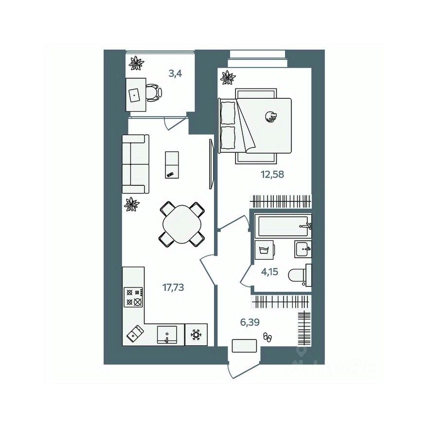 58 м² · Этаж 15 из 18