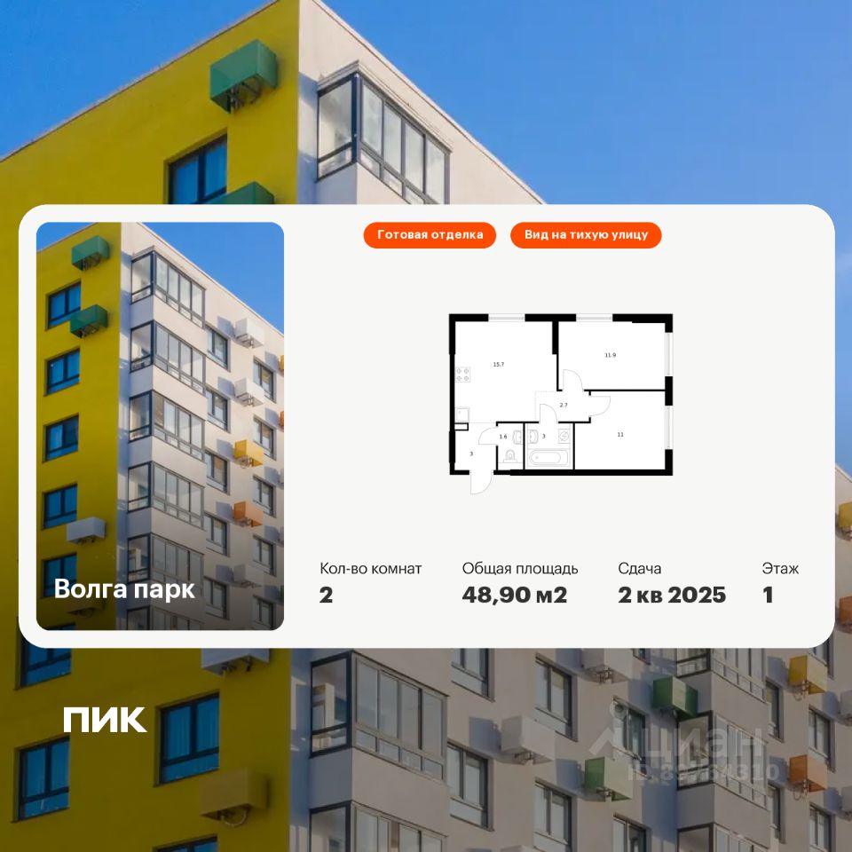 Продаётся 2-комн. квартира площадью 48,9 кв.м на 1 этаже 17 этажного дома (Корпус 6Б, Секция 1) проекта ПИК Волга парк. Светлый просторный подъезд на уровне земли, функциональная планировка, большие окна, c отделкой. Жилой комплекс ''Волга парк'' расположен в 15 мин. езды от центра Ярославля во Фрунзенском р-не на правом берегу Волги. В проекте предусмотрено 18 жилых корпусов, две школы и 3 детских сада. Квартиры с нейтральной отделкой, подъезды с высокими потолками, панорамными окнами и двумя входами на уровне земли без ступеней и пандусов. В каждом дворе будет зелень, места для отдыха, детские и спортивные площадки. На первых этажах готовых домов открыта автошкола, мебельный и цветочный магазины, студия красоты, паб, по мере сдачи корпусов появится больше товаров и услуг. В непосредственной близости находится 4 детских сада, школа, поликлиники, торговый центр ''Фреш'' , фитнес-клубы. В 15 минутах ходьбы расположены крупные гипермаркеты ''Лента'' и Metro, а также благоустроенный парк Судостроителей. Артикул 906091 (Застройщик ООО ''РУСБИЗНЕСИНВЕСТ'')