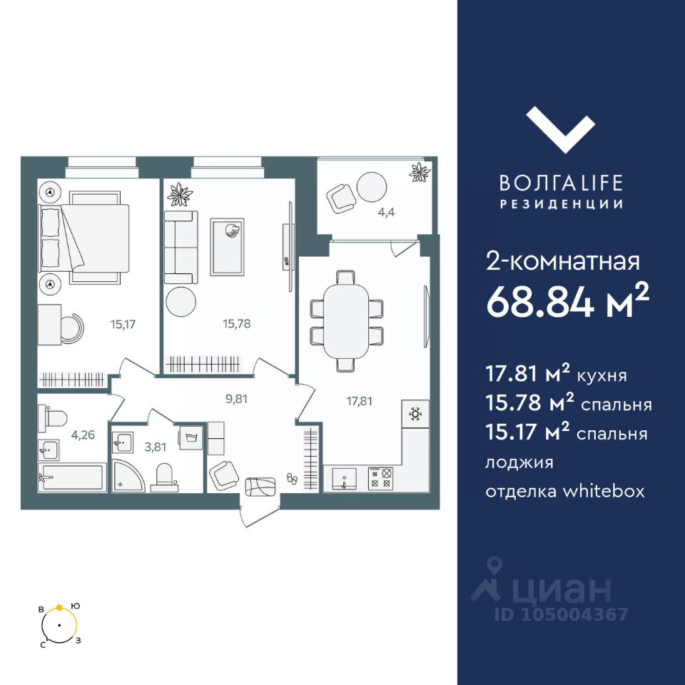 Светлая просторная квартира с ремонтом в городском квартале Норские резиденции! 2-комнатная квартира • площадь 58.3 м² • кухня 11.88 м² • спальня 17.82 м² • гостиная 12.18 м² • застекленная лоджия • готовая отделка В квартире • Теплые стены из керамического кирпича • Выполнена отделка в светлых тонах Белые обои под покраску, светлые двери и линолеум, санузел в кафеле, установлена сантехника • Установлен качественный котел Navien • Индивидуальное отопление Всегда будет горячая вода, вы сами регулируете температуру в квартире и намного меньше, чем в домах с центральным отоплением В квартале: • Круглосуточное видеонаблюдение с доступом к камерам в реальном времени • Охрана • Своя управляющая компания Вся инфраструктура рядом. Пешком до любой точки в пределах 10 минут. • Детский сад • Фитнес клуб • Магазины, аптеки, салон красоты, развивашки для детей, пекарня, ателье и многое другое • В центре квартала большая детская площадка-корабль • Баскетбольная и футбольная площадки, бесплатный тренажерный зал под открытым небом • Парк для прогулок До реки Нора 5 минут- летом можно пожарить шашлыки, зимой покататься на ватрушках, лыжах или просто погулять! До городского пляжа на Волге 15-20 минут пешком. Квартира подходит под господдержку! Звоните! Покажем квартал, отделку квартир, фитнес-клуб, проведем экскурсию!