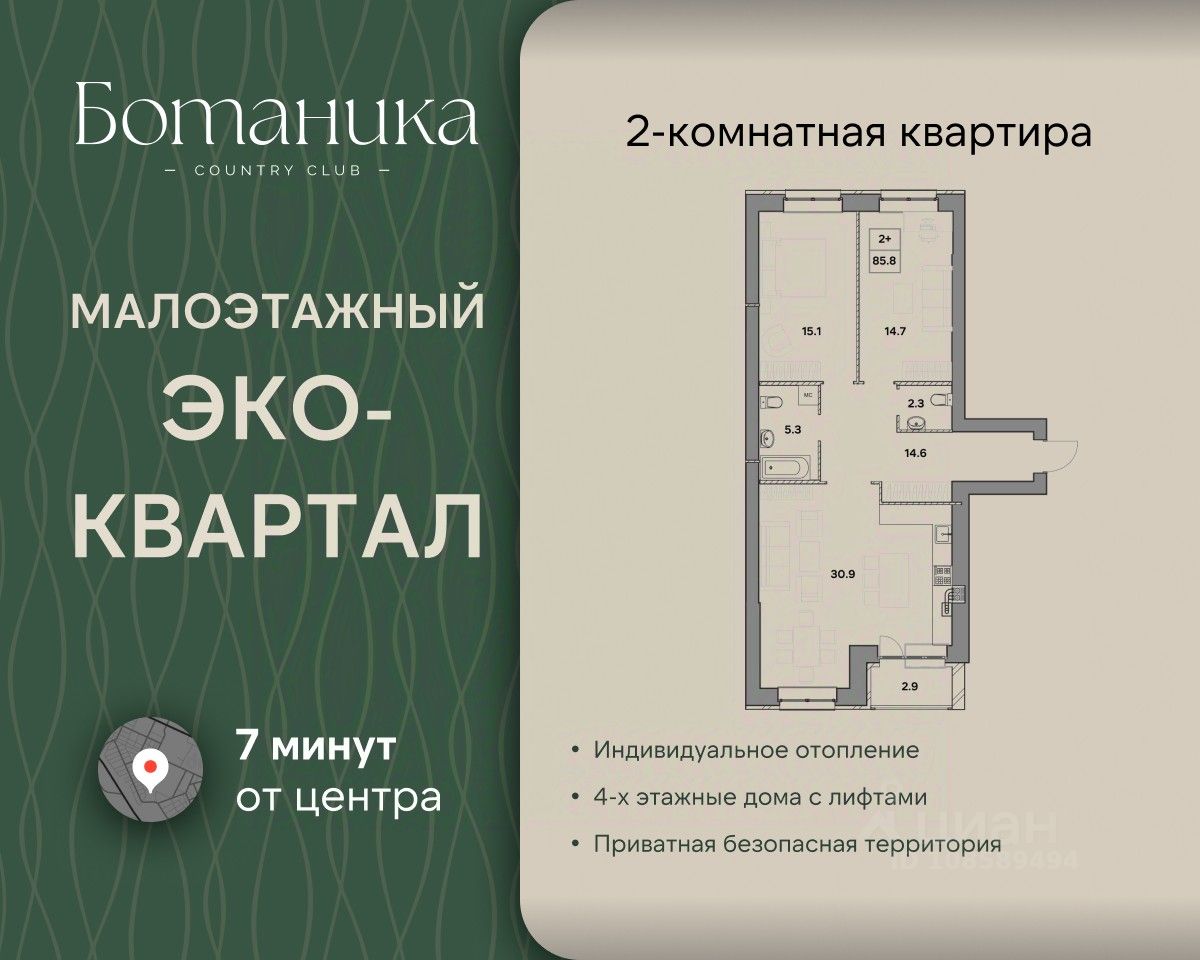 Продается 2-комнатная квартира 10 в жилом доме комфорт-класса Жилой квартал ''Ботаника'' это островок спокойствия и благополучия посреди шумного города. Наш квартал — новая точка на карте города. И как все новое, он привлекает к себе внимание не только высоким качеством домостроения, но и удачным расположением. Это самый экологически чистый район Ярославля — вокруг сосновый лес и свежий воздух! Квартал обладает отличной транспортной доступностью, всего за пару минут можно пройти к остановке общественного транспорта и быстро добраться в любую точку города. Неподалеку от комплекса пролегают главные магистрали — 10 минут и вы в любом районе Ярославля без пробок! В шаговой доступности есть всё необходимое для комфортной жизни и досуга: супермаркеты, фермерский магазин, Ярославский Зоопарк, озеро ''Техас'' - на его берегу находится памятник природы Смоленский бор. В паре минут располагается Тверицкая набережная реки Волги и вся развитая инфраструктура Заволжского и Кировского районов. Жилой квартал представляет собой комплексную застройку с авторской архитектурой, высокой технологичностью и благоустроенной прилегающей территорией. Организованы детские игровые площадки, спортивный комплекс и отдельная территория для прогулок с домашними питомцами. В каждой квартире установлено индивидуальное газовое отопление, а подъезды оборудованы современными комфортабельными лифтами