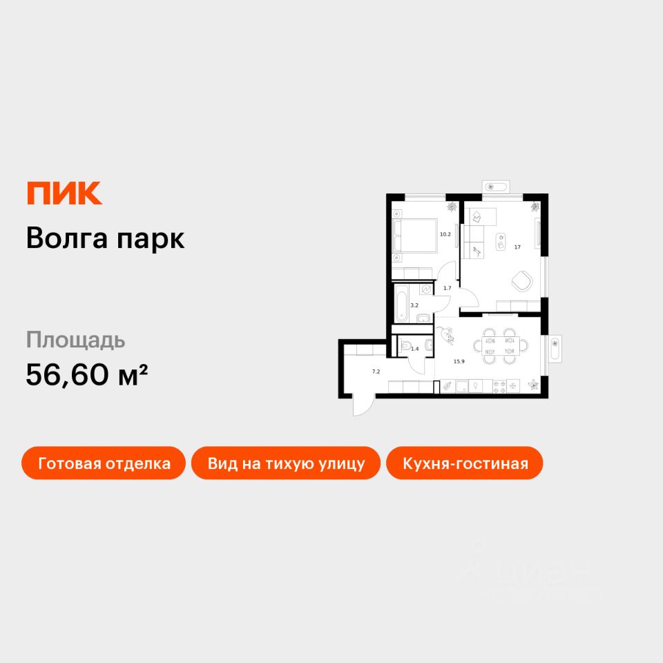 82 м² · Этаж 16 из 17