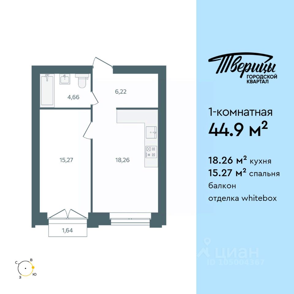 Продаётся 1-комнатная квартира в строящемся доме (Стр. 1 этап 3), срок сдачи: I-кв. 2028, общей площадью 44.89 кв.м., на 7 этаже. Новый центр Заволжского района. Квартал расположен на пересечении улиц Университетская и Маяковского. В окружении зелени в самом чистом районе города. Свежий речной воздух, вид из окон на центр города, стрелку и Успенский собор. В 600 метрах набережная Волги, белоснежные яхты и песчаные пляжи. До центра 1015 минут. До Глобуса 8 минут по новой дороге. Тверицы - это баланс между ритмом жизни большого города и отдыхом на природе. Вы всегда в центре событий, в окружении развитой инфраструктуры квартала. Магазины, салоны красоты и кафе расположены на первых этажах корпусов, а школа, два детских сада, фитнес-клуб в двух шагах от дома. Вы устраиваете пикники на набережной Волги, выходите на воду на катере или сап-борде, прогуливаетесь по песчаной косе или отправляетесь на прогулку в сосновый бор. Хорошая экология, много зелени, транспортная доступность - основные преимущества, которые отмечают жители Заволжского района. На первых этажах - кофейни и уютные магазинчики. Просторные парковки и подземные паркинги. Дворы без машин, с детскими и спортивными площадками. Новый мост, строительство которого запланировано на 20272028 гг., станет следующим витком развития района.