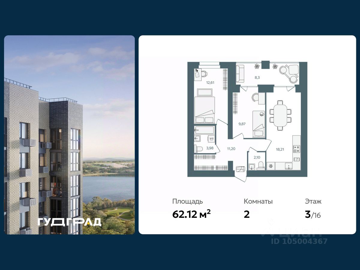 62 м² · Этаж 3 из 16