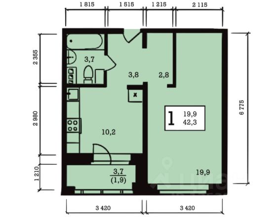 42 м² · Этаж 9 из 10