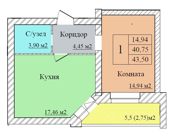 43 м² · Этаж 1 из 8