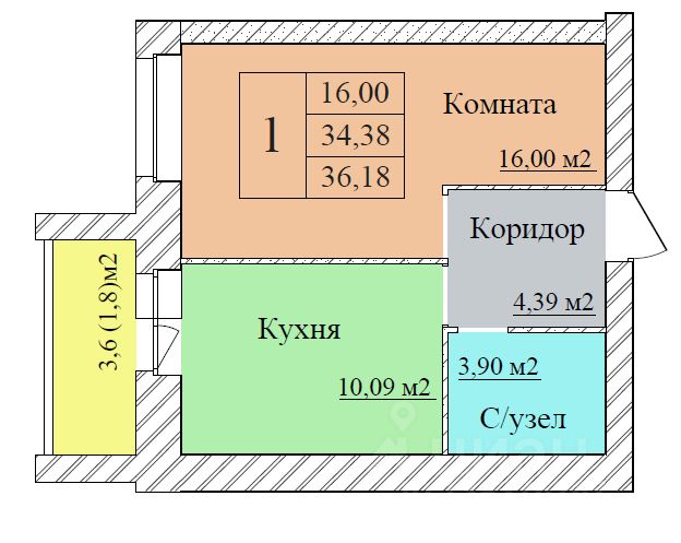 39 м² · Этаж 3 из 8