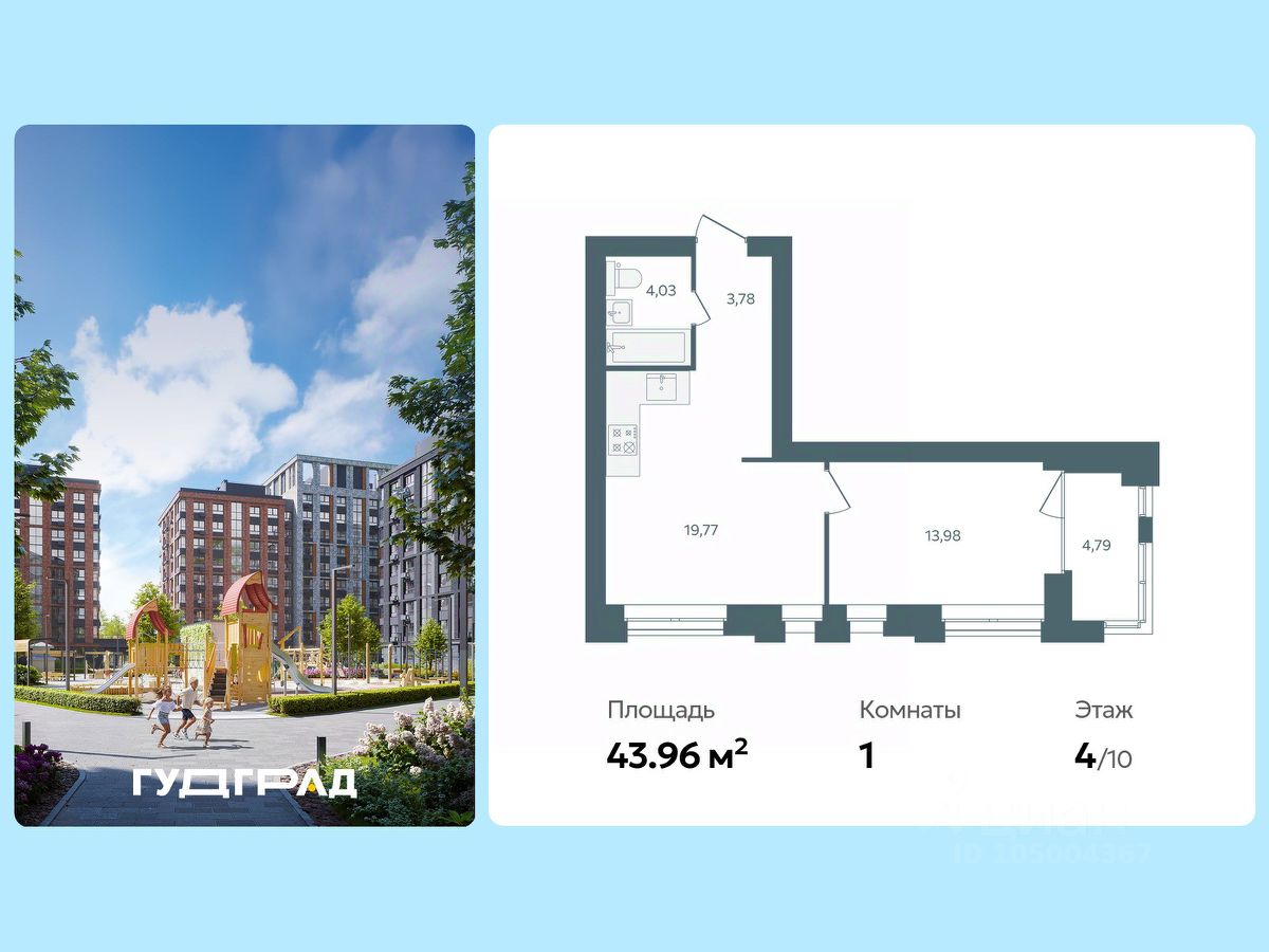 43 м² · Этаж 4 из 10