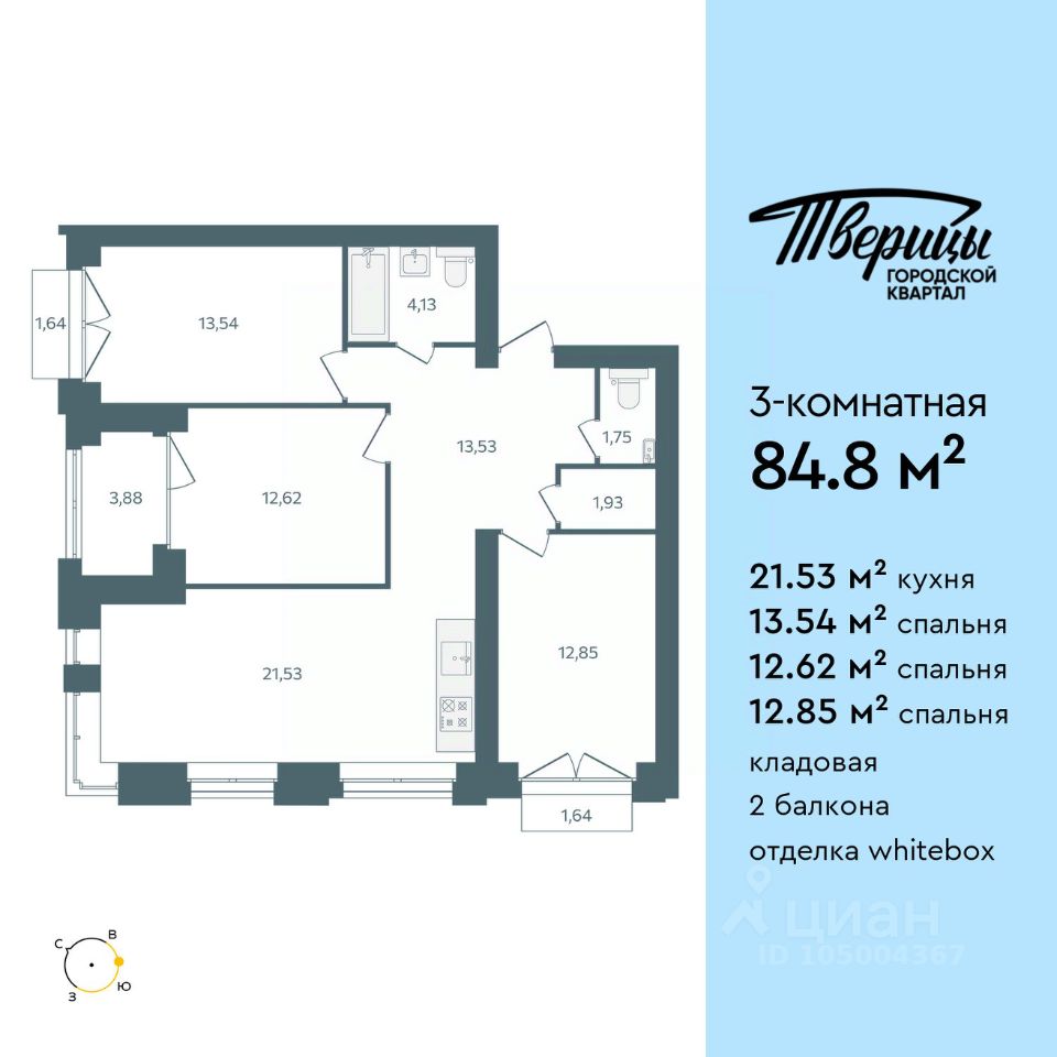 Продаётся 3-комнатная квартира в строящемся доме (Стр. 1 этап 3), срок сдачи: I-кв. 2028, общей площадью 84.8 кв.м., на 3 этаже. Новый центр Заволжского района. Квартал расположен на пересечении улиц Университетская и Маяковского. В окружении зелени в самом чистом районе города. Свежий речной воздух, вид из окон на центр города, стрелку и Успенский собор. В 600 метрах набережная Волги, белоснежные яхты и песчаные пляжи. До центра 1015 минут. До Глобуса 8 минут по новой дороге. Тверицы - это баланс между ритмом жизни большого города и отдыхом на природе. Вы всегда в центре событий, в окружении развитой инфраструктуры квартала. Магазины, салоны красоты и кафе расположены на первых этажах корпусов, а школа, два детских сада, фитнес-клуб в двух шагах от дома. Вы устраиваете пикники на набережной Волги, выходите на воду на катере или сап-борде, прогуливаетесь по песчаной косе или отправляетесь на прогулку в сосновый бор. Хорошая экология, много зелени, транспортная доступность - основные преимущества, которые отмечают жители Заволжского района. На первых этажах - кофейни и уютные магазинчики. Просторные парковки и подземные паркинги. Дворы без машин, с детскими и спортивными площадками. Новый мост, строительство которого запланировано на 20272028 гг., станет следующим витком развития района.