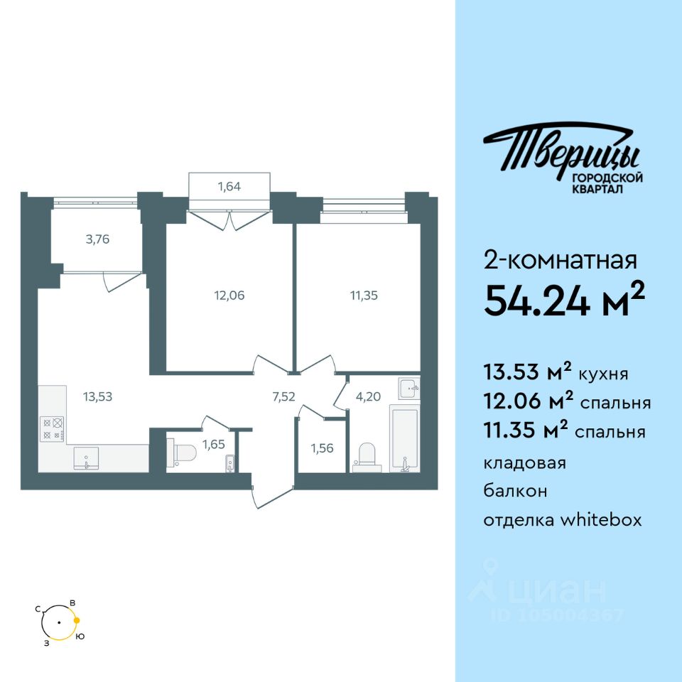 Продаётся 2-комнатная квартира в строящемся доме (Стр. 1 этап 3), срок сдачи: I-кв. 2028, общей площадью 54.24 кв.м., на 4 этаже. Новый центр Заволжского района. Квартал расположен на пересечении улиц Университетская и Маяковского. В окружении зелени в самом чистом районе города. Свежий речной воздух, вид из окон на центр города, стрелку и Успенский собор. В 600 метрах набережная Волги, белоснежные яхты и песчаные пляжи. До центра 1015 минут. До Глобуса 8 минут по новой дороге. Тверицы - это баланс между ритмом жизни большого города и отдыхом на природе. Вы всегда в центре событий, в окружении развитой инфраструктуры квартала. Магазины, салоны красоты и кафе расположены на первых этажах корпусов, а школа, два детских сада, фитнес-клуб в двух шагах от дома. Вы устраиваете пикники на набережной Волги, выходите на воду на катере или сап-борде, прогуливаетесь по песчаной косе или отправляетесь на прогулку в сосновый бор. Хорошая экология, много зелени, транспортная доступность - основные преимущества, которые отмечают жители Заволжского района. На первых этажах - кофейни и уютные магазинчики. Просторные парковки и подземные паркинги. Дворы без машин, с детскими и спортивными площадками. Новый мост, строительство которого запланировано на 20272028 гг., станет следующим витком развития района.