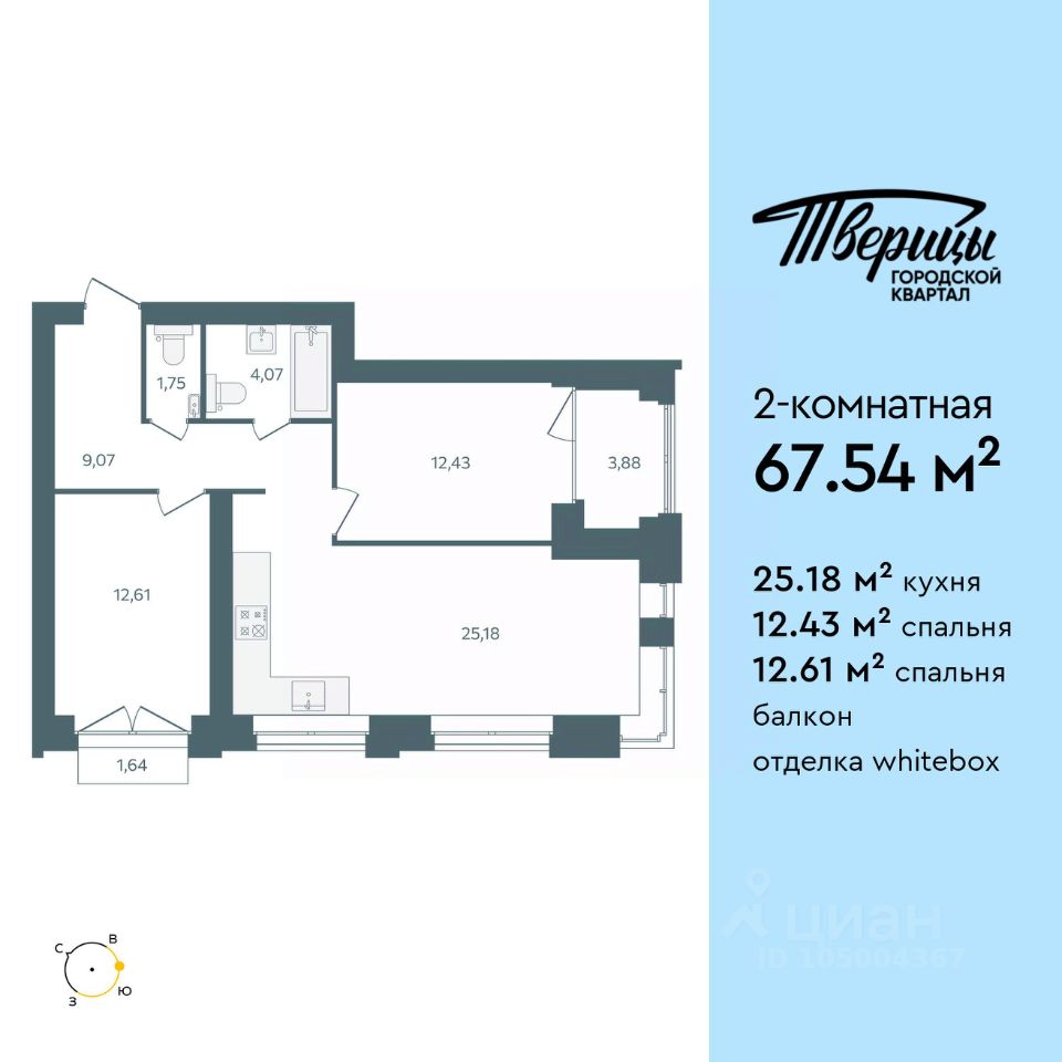 Продаётся 2-комнатная квартира в строящемся доме (Стр. 1 этап 3), срок сдачи: I-кв. 2028, общей площадью 67.54 кв.м., на 9 этаже. Новый центр Заволжского района. Квартал расположен на пересечении улиц Университетская и Маяковского. В окружении зелени в самом чистом районе города. Свежий речной воздух, вид из окон на центр города, стрелку и Успенский собор. В 600 метрах набережная Волги, белоснежные яхты и песчаные пляжи. До центра 1015 минут. До Глобуса 8 минут по новой дороге. Тверицы - это баланс между ритмом жизни большого города и отдыхом на природе. Вы всегда в центре событий, в окружении развитой инфраструктуры квартала. Магазины, салоны красоты и кафе расположены на первых этажах корпусов, а школа, два детских сада, фитнес-клуб в двух шагах от дома. Вы устраиваете пикники на набережной Волги, выходите на воду на катере или сап-борде, прогуливаетесь по песчаной косе или отправляетесь на прогулку в сосновый бор. Хорошая экология, много зелени, транспортная доступность - основные преимущества, которые отмечают жители Заволжского района. На первых этажах - кофейни и уютные магазинчики. Просторные парковки и подземные паркинги. Дворы без машин, с детскими и спортивными площадками. Новый мост, строительство которого запланировано на 20272028 гг., станет следующим витком развития района.