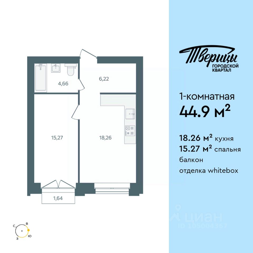 Продаётся 1-комнатная квартира в строящемся доме (Стр. 1 этап 3), срок сдачи: I-кв. 2028, общей площадью 44.9 кв.м., на 4 этаже. Новый центр Заволжского района. Квартал расположен на пересечении улиц Университетская и Маяковского. В окружении зелени в самом чистом районе города. Свежий речной воздух, вид из окон на центр города, стрелку и Успенский собор. В 600 метрах набережная Волги, белоснежные яхты и песчаные пляжи. До центра 1015 минут. До Глобуса 8 минут по новой дороге. Тверицы - это баланс между ритмом жизни большого города и отдыхом на природе. Вы всегда в центре событий, в окружении развитой инфраструктуры квартала. Магазины, салоны красоты и кафе расположены на первых этажах корпусов, а школа, два детских сада, фитнес-клуб в двух шагах от дома. Вы устраиваете пикники на набережной Волги, выходите на воду на катере или сап-борде, прогуливаетесь по песчаной косе или отправляетесь на прогулку в сосновый бор. Хорошая экология, много зелени, транспортная доступность - основные преимущества, которые отмечают жители Заволжского района. На первых этажах - кофейни и уютные магазинчики. Просторные парковки и подземные паркинги. Дворы без машин, с детскими и спортивными площадками. Новый мост, строительство которого запланировано на 20272028 гг., станет следующим витком развития района.