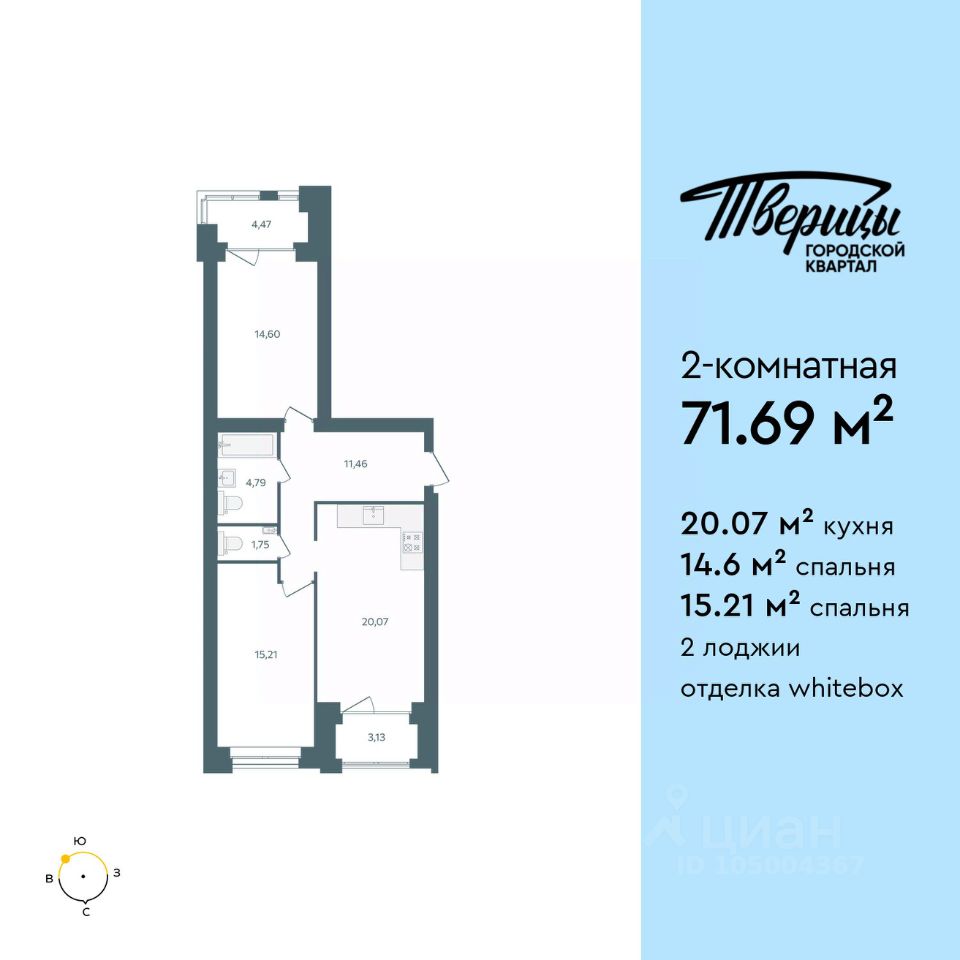 Продаётся 2-комнатная квартира в строящемся доме (Стр. 1 этап 2), срок сдачи: I-кв. 2028, общей площадью 71.69 кв.м., на 7 этаже. Новый центр Заволжского района. Квартал расположен на пересечении улиц Университетская и Маяковского. В окружении зелени в самом чистом районе города. Свежий речной воздух, вид из окон на центр города, стрелку и Успенский собор. В 600 метрах набережная Волги, белоснежные яхты и песчаные пляжи. До центра 1015 минут. До Глобуса 8 минут по новой дороге. Тверицы - это баланс между ритмом жизни большого города и отдыхом на природе. Вы всегда в центре событий, в окружении развитой инфраструктуры квартала. Магазины, салоны красоты и кафе расположены на первых этажах корпусов, а школа, два детских сада, фитнес-клуб в двух шагах от дома. Вы устраиваете пикники на набережной Волги, выходите на воду на катере или сап-борде, прогуливаетесь по песчаной косе или отправляетесь на прогулку в сосновый бор. Хорошая экология, много зелени, транспортная доступность - основные преимущества, которые отмечают жители Заволжского района. На первых этажах - кофейни и уютные магазинчики. Просторные парковки и подземные паркинги. Дворы без машин, с детскими и спортивными площадками. Новый мост, строительство которого запланировано на 20272028 гг., станет следующим витком развития района.
