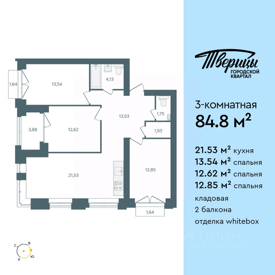 Продаётся 3-комнатная квартира в строящемся доме (Стр. 1 этап 3), срок сдачи: I-кв. 2028, общей площадью 84.8 кв.м., на 4 этаже. Новый центр Заволжского района. Квартал расположен на пересечении улиц Университетская и Маяковского. В окружении зелени в самом чистом районе города. Свежий речной воздух, вид из окон на центр города, стрелку и Успенский собор. В 600 метрах набережная Волги, белоснежные яхты и песчаные пляжи. До центра 1015 минут. До Глобуса 8 минут по новой дороге. Тверицы - это баланс между ритмом жизни большого города и отдыхом на природе. Вы всегда в центре событий, в окружении развитой инфраструктуры квартала. Магазины, салоны красоты и кафе расположены на первых этажах корпусов, а школа, два детских сада, фитнес-клуб в двух шагах от дома. Вы устраиваете пикники на набережной Волги, выходите на воду на катере или сап-борде, прогуливаетесь по песчаной косе или отправляетесь на прогулку в сосновый бор. Хорошая экология, много зелени, транспортная доступность - основные преимущества, которые отмечают жители Заволжского района. На первых этажах - кофейни и уютные магазинчики. Просторные парковки и подземные паркинги. Дворы без машин, с детскими и спортивными площадками. Новый мост, строительство которого запланировано на 20272028 гг., станет следующим витком развития района.