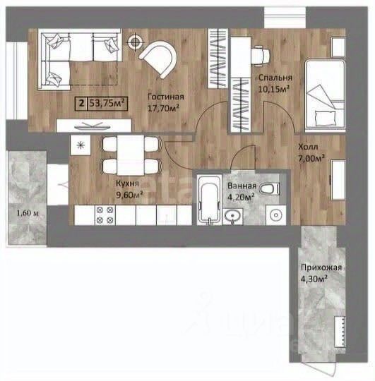 53 м² · Этаж 14 из 15