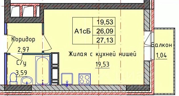 26 м² · Этаж 10 из 19