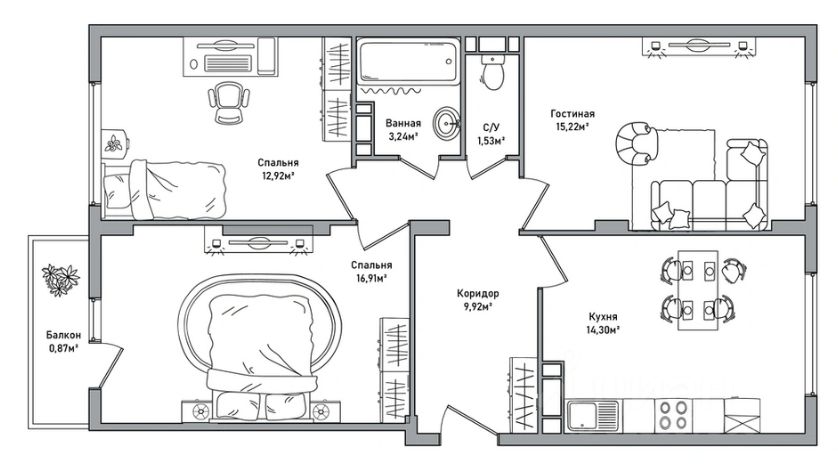 Трехкомнатные