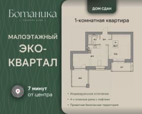 Продается 1-комнатная квартира 56 в жилом доме комфорт-класса В каждой квартире установлено индивидуальное газовое отопление, а подъезды оборудованы современными комфортабельными лифтами ЖК ''Ботаника островок спокойствия и благополучия посреди шумного города Наш квартал — новая точка на карте города. И как все новое, он привлекает к себе внимание не только высоким качеством домостроения, но и удачным расположением. Это самый экологически чистый район Ярославля — вокруг сосновый лес и свежий воздух! Жилой квартал обладает отличной транспортной доступностью, всего за пару минут можно пройти к остановке общественного транспорта и быстро добраться в любую точку города. Неподалеку от комплекса пролегают главные магистрали — 10 минут и вы в любом районе Ярославля без пробок! В шаговой доступности есть всё необходимое для комфортной жизни и досуга: супермаркеты, фермерский магазин, великолепный Ярославский Зоопарк, озеро ''Техас'' - хит пляжного сезона в обрамлении Смоленского бора. Рядом находится Тверицкая набережная реки Волги и вся развитая инфраструктура Заволжского и Кировского районов. Жилой квартал представляет собой комплексную застройку с авторской архитектурой, современным домостроением и благоустроенной прилегающей территорией. Организованы детские игровые площадки, спортивный комплекс и отдельная территория для прогулок с домашними питомцами.