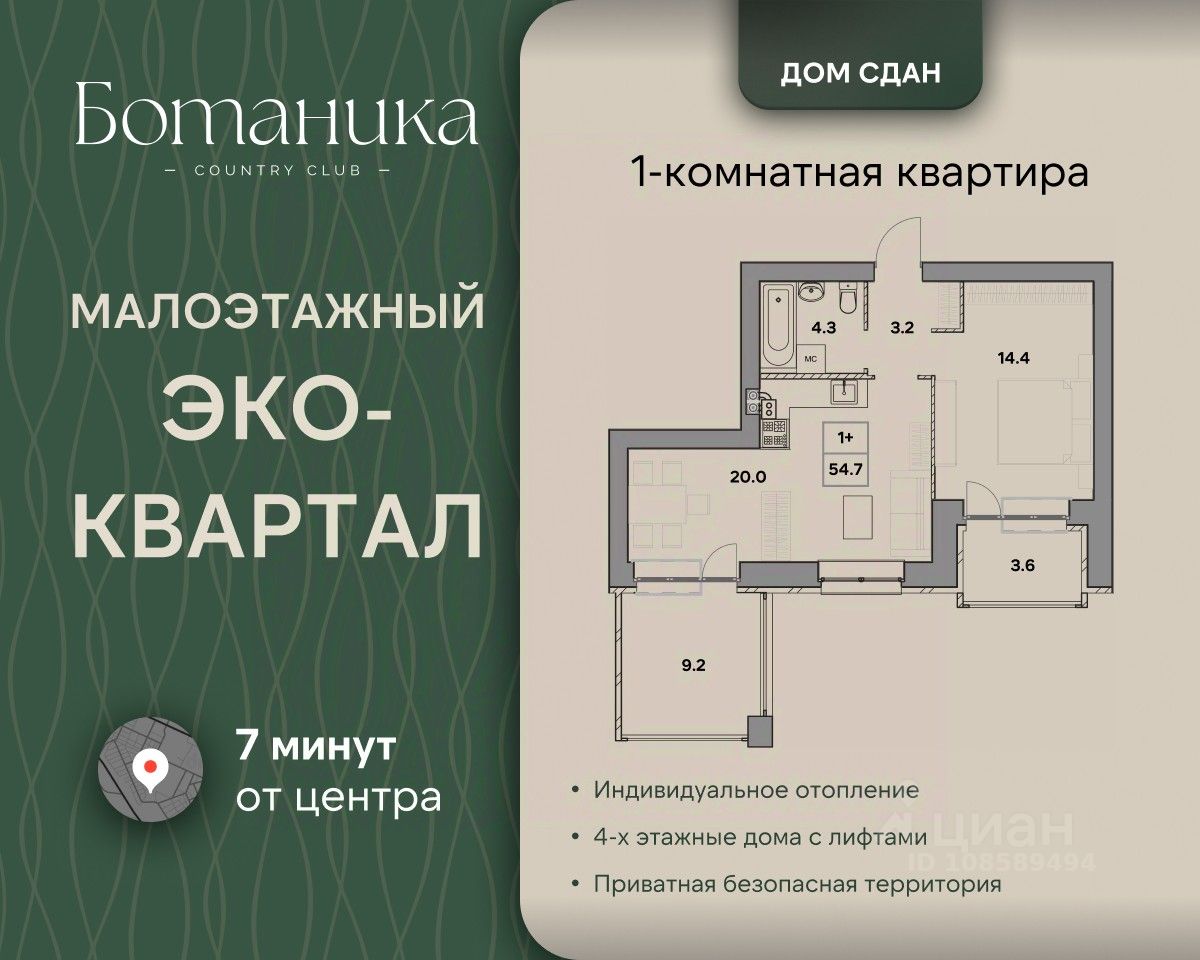 Жилой квартал ''Ботаника'' это островок спокойствия и благополучия посреди шумного города. Наш квартал — новая точка на карте города. И как все новое, он привлекает к себе внимание не только высоким качеством домостроения, но и удачным расположением. Это самый экологически чистый район Ярославля — вокруг сосновый лес и свежий воздух! Квартал обладает отличной транспортной доступностью, всего за пару минут можно пройти к остановке общественного транспорта и быстро добраться в любую точку города. Неподалеку от комплекса пролегают главные магистрали — 10 минут и вы в любом районе Ярославля без пробок! В шаговой доступности есть всё необходимое для комфортной жизни и досуга: супермаркеты, фермерский магазин, Ярославский Зоопарк, озеро ''Техас'' - на его берегу находится памятник природы Смоленский бор. В паре минут располагается Тверицкая набережная реки Волги и вся развитая инфраструктура Заволжского и Кировского районов. Жилой квартал представляет собой комплексную застройку с авторской архитектурой, высокой технологичностью и благоустроенной прилегающей территорией. Организованы детские игровые площадки, спортивный комплекс и отдельная территория для прогулок с домашними питомцами. В каждой квартире установлено индивидуальное газовое отопление, а подъезды оборудованы современными комфортабельными лифтами. Квартира 56