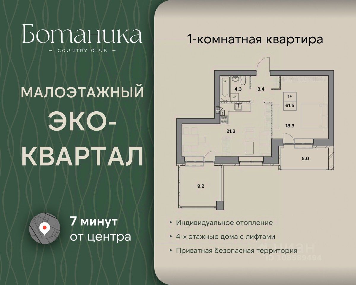 Жилой квартал ''Ботаника'' это островок спокойствия и благополучия посреди шумного города. Наш квартал — новая точка на карте города. И как все новое, он привлекает к себе внимание не только высоким качеством домостроения, но и удачным расположением. Это самый экологически чистый район Ярославля — вокруг сосновый лес и свежий воздух! Квартал обладает отличной транспортной доступностью, всего за пару минут можно пройти к остановке общественного транспорта и быстро добраться в любую точку города. Неподалеку от комплекса пролегают главные магистрали — 10 минут и вы в любом районе Ярославля без пробок! В шаговой доступности есть всё необходимое для комфортной жизни и досуга: супермаркеты, фермерский магазин, Ярославский Зоопарк, озеро ''Техас'' - на его берегу находится памятник природы Смоленский бор. В паре минут располагается Тверицкая набережная реки Волги и вся развитая инфраструктура Заволжского и Кировского районов. Жилой квартал представляет собой комплексную застройку с авторской архитектурой, высокой технологичностью и благоустроенной прилегающей территорией. Организованы детские игровые площадки, спортивный комплекс и отдельная территория для прогулок с домашними питомцами. В каждой квартире установлено индивидуальное газовое отопление, а подъезды оборудованы современными комфортабельными лифтами. Квартира 7