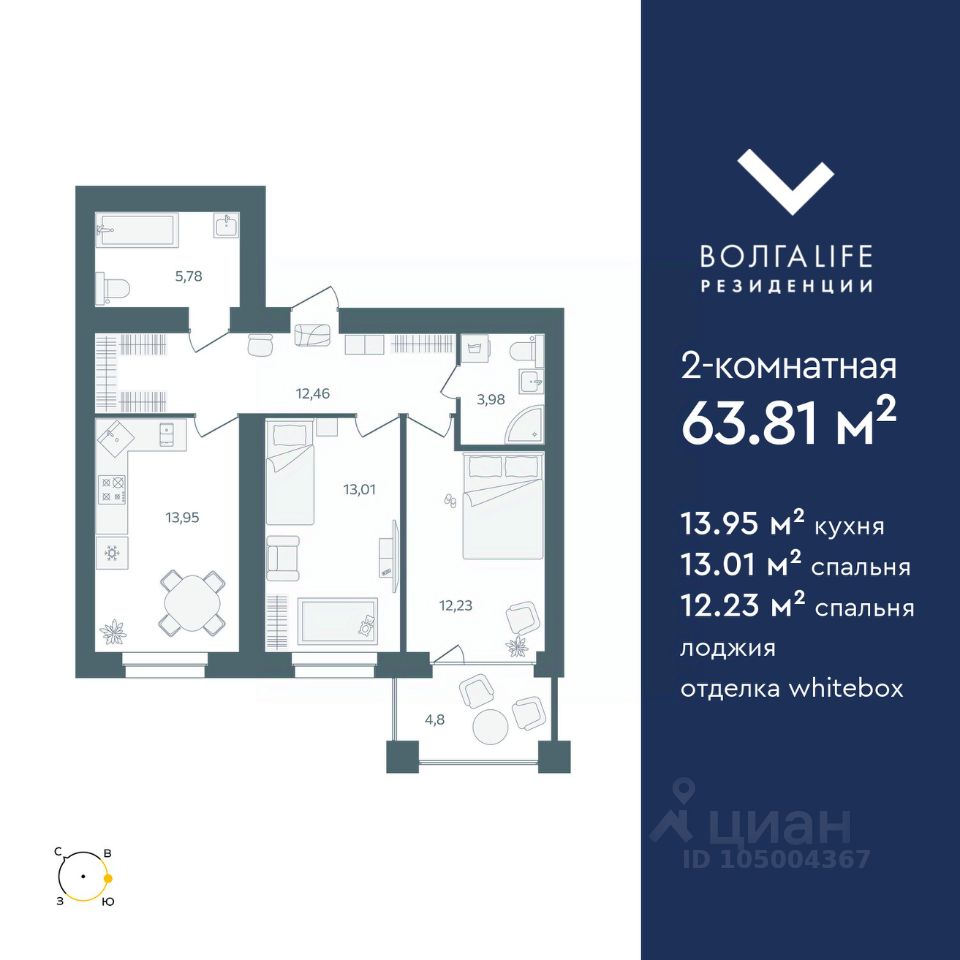 Светлая просторная квартира с ремонтом в городском квартале Норские резиденции! 2-комнатная квартира • площадь 61.75 м² • кухня 15.33 м² • спальня 14.82 м² • гостиная 15.2 м² • застекленная лоджия • готовая отделка В квартире • Теплые стены из керамического кирпича • Выполнена отделка в светлых тонах Белые обои под покраску, светлые двери и линолеум, санузел в кафеле, установлена сантехника • Установлен качественный котел Navien • Индивидуальное отопление Всегда будет горячая вода, вы сами регулируете температуру в квартире и намного меньше, чем в домах с центральным отоплением В квартале: • Круглосуточное видеонаблюдение с доступом к камерам в реальном времени • Охрана • Своя управляющая компания Вся инфраструктура рядом. Пешком до любой точки в пределах 10 минут. • Детский сад • Фитнес клуб • Магазины, аптеки, салон красоты, развивашки для детей, пекарня, ателье и многое другое • В центре квартала большая детская площадка-корабль • Баскетбольная и футбольная площадки, бесплатный тренажерный зал под открытым небом • Парк для прогулок До реки Нора 5 минут- летом можно пожарить шашлыки, зимой покататься на ватрушках, лыжах или просто погулять! До городского пляжа на Волге 15-20 минут пешком. Квартира подходит под господдержку! Звоните! Покажем квартал, отделку квартир, фитнес-клуб, проведем экскурсию!