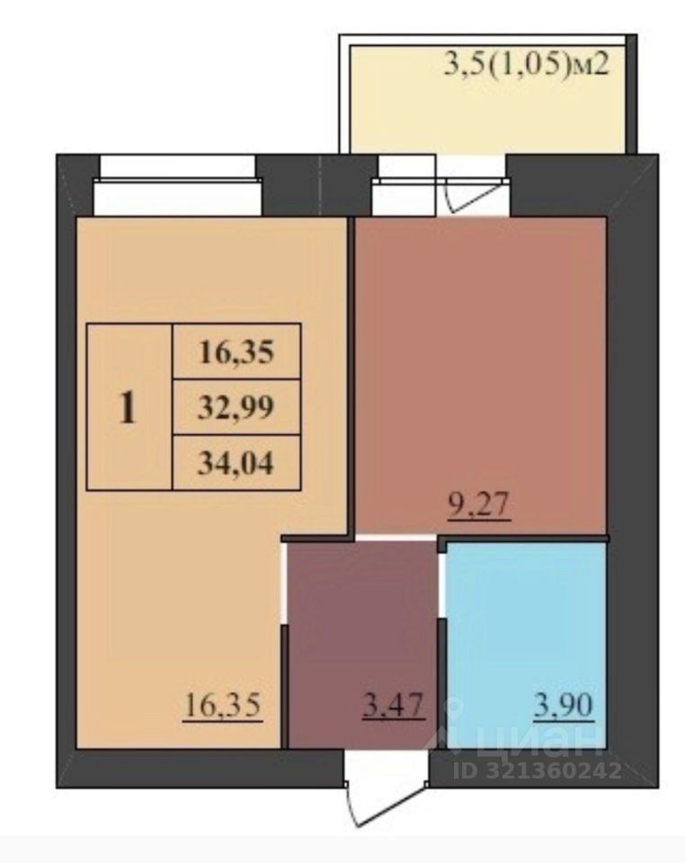 34 м² · Этаж 7 из 9