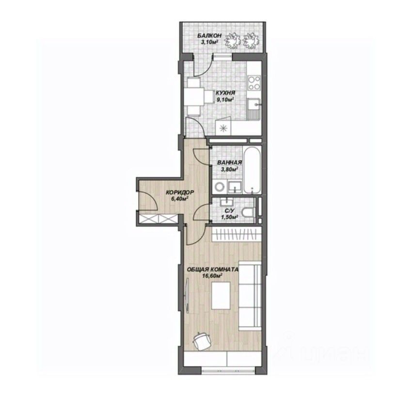 38 м² · Этаж 6 из 9