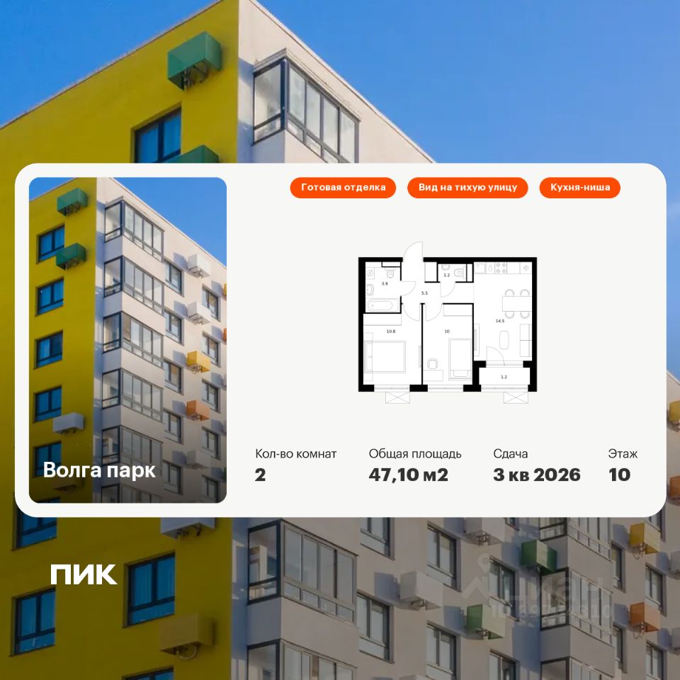Продаётся 2-комн. квартира площадью 47,1 кв.м на 10 этаже 17 этажного дома (Корпус 1В, Секция 1) проекта ПИК Волга парк. Светлый просторный подъезд на уровне земли, функциональная планировка, большие окна, c отделкой. Жилой комплекс ''Волга парк'' расположен в 15 мин. езды от центра Ярославля во Фрунзенском р-не на правом берегу Волги. В проекте предусмотрено 18 жилых корпусов, две школы и 3 детских сада. Квартиры с нейтральной отделкой, подъезды с высокими потолками, панорамными окнами и двумя входами на уровне земли без ступеней и пандусов. В каждом дворе будет зелень, места для отдыха, детские и спортивные площадки. На первых этажах готовых домов открыта автошкола, мебельный и цветочный магазины, студия красоты, паб, по мере сдачи корпусов появится больше товаров и услуг. В непосредственной близости находится 4 детских сада, школа, поликлиники, торговый центр ''Фреш'' , фитнес-клубы. В 15 минутах ходьбы расположены крупные гипермаркеты ''Лента'' и Metro, а также благоустроенный парк Судостроителей. Артикул 975690 (Застройщик ООО ''РУСБИЗНЕСИНВЕСТ'')