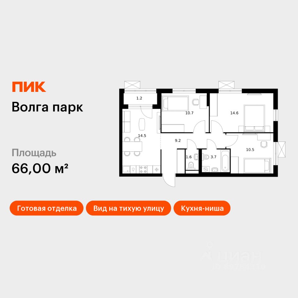 Продаётся 3-комнатная квартира в сданном доме (1-я очередь), срок сдачи: III-кв. 2025, общей площадью 66.12 кв.м., на 17 этаже. ЖК ''АЭРОПАРК'' - это продолжение первого в Ярославле проекта сотрудничества с крупнейшим российским застройщиком ГК ''ПИК'', продолжение работы с ''ПИК-франшиза''. Преимущества жилого комплекса не оставляют сомнений в выборе новой квартиры. Удобное расположение Дом находится в районе пересечения ул.Чернопрудная и ул.Летная - добраться до центра на автомобиле можно за 15 минут. В 2 минутах пешком от жилого комплекса расположены остановки общественного транспорта, на котором можно уехать в любой конец города. Развитая инфраструктура Все, что нужно для комфортной жизни в своем районе - Поблизости находятся четыре детских сада, школа, поликлиника, кафе и магазины. В шаговой доступности расположены гипермаркеты Лента, METRO, благоустроенный парк Судостроителей, Ярославский аквапарк и фитнес-клуб Loft Fitness. Современная обустроенная дворовая территория Вы можете быть спокойны, отпуская своего ребенка во двор на прогулку - территория с видеонаблюдением, отсутствие машин и детская площадка с усовершенствованным покрытием сделают его безопасным для самых маленьких жителей дома. Ребенок всегда сможет самостоятельно вернуться домой - поручни в лифтах расположены на высоте 85 см, а кнопки управления не выше 142 см. Жителям постарше тоже есть чем заняться: спортивная площадка workout для любителей спорта, малые архитектурные формы для созерцателей. Взрослые и дети не мешают друг другу благодаря возрастному зонированию двора. Для автомобилистов на близлежащей территории расположатся охраняемые парковочные места. Велосипедистам тоже есть, где оставить транспорт - рядом с каждым подъездом будет велопарковка. Светлые и безопасные подъезды Чувствуйте себя как дома уже с момента входа в подъезд. В каждом из них будут предусмотрены места для хранения колясок и велосипедов, грузовые и пассажирские лифты импортного производства фирмы KONE. В подъезде будет светло и безопасно благодаря прозрачным входным дверям с антивандальной защищенностью и ярким энергосберегающим лампам с датчиками движения на всех этажах. Подняться на этаж с багажом или коляской не составит труда, ведь вход в подъезд расположен на уровне тротуара. Просторные входные группы, улучшенные подъездные окна, грязезащитное покрытие при входе в подъезд создадут ощущение чистоты и комфорта Вы никогда не встретите в подъезде посторонних лиц - войти в него можно только по индивидуальным смарт-картам, а для пропуска курьеров и соблюдения порядка на первом этаже будет работать консьерж. Встречать гостей удобно благодаря современным домофонам с видеосвязью. Квартиры с отделкой white box White Box включает в себя выполнение следующих видов работ: бетонная стяжка пола, готовая для укладки финишного покрытия,установка окон и подоконников, выравнивание откосов,выравнивание, грунтовка и штукатурка стен,подготовка потолков,проведение электропроводки по всем помещениям,проведение