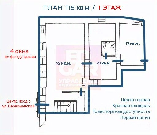 АРЕНДА ПРЕМИУМ-ПОМЕЩЕНИЯ 125 М² В СЕРДЦЕ ЯРОСЛАВЛЯ Прямо от собственника — без комиссий! ИДЕАЛЬНО ДЛЯ: Офиса премиум-класса Центра оказания услуг Шоу-рума или салона Коворкинга для творческих команд ГОТОВЫЕ РЕШЕНИЯ: • 125 м² с возможностью зонирования • Потолки 3 м — пространство для смелых идей • Транспортная доступность — Важно! для сотрудников и клиентов • Отдельный вход и работа 24/7 ЗОЛОТАЯ ЛОКАЦИЯ: Напротив Красной площади (основная транспортная развязка) Рядом: театр Волкова, ресторан ''Мамука'' Пешеходный и авто трафик ВАШИ ВЫГОДЫ: • Яркая вывеска на первой линии • Все коммуникации центральные • Отдельный вход с Первомайского бульвара ЗВОНИТЕ — УСТРОИМ ПОКАЗ! Предоставим видеообзор помещения. P.S. Это помещение — готовый инструмент для роста вашего бизнеса в самом проходном месте города! #АрендаЯрославль #КраснаяПлощадь #БизнесПомещение #ОфисВЦентре