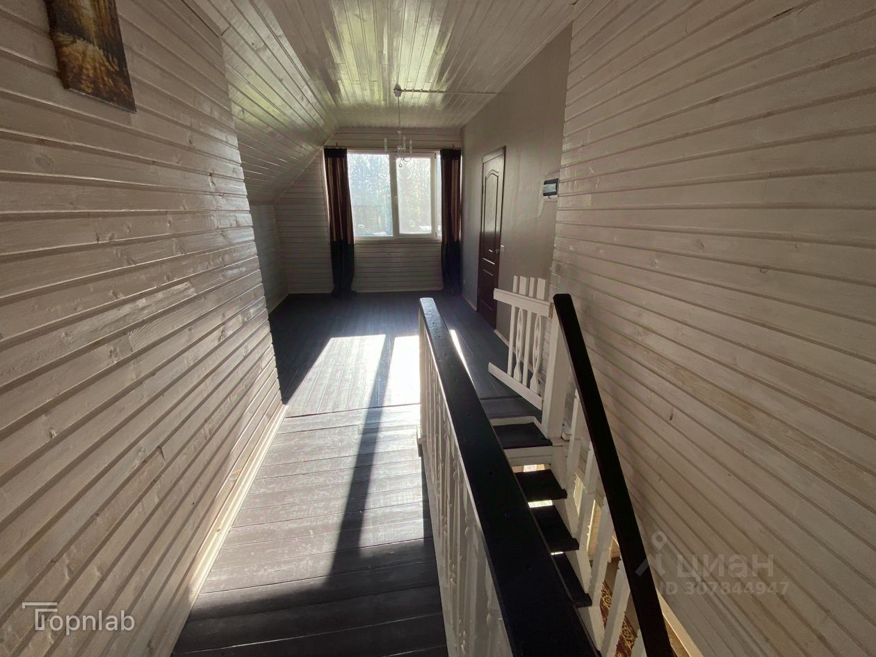 Стены-бревно.Фундамент-ленточный.Полы и перекрытия деревянные. Крыша-ондулин. Окна ПВХ.Стены обшиты вагонкой.Высота потолков 2,7 м. Имеется подвальное помещение для хранения консервации и овощей глубиной 2,3 м. Входная группа с открытой террасой. Отопление дома: кирпичная печь-камин с двумя топками и электрообогреватели. Горячая вода от накопительного водонагревателя. Установлена современная пультовая сигнализация. На первом этаже находятся: просторная открытая терраса, прихожая 13,9 кв.м., кухня 19,5 кв.м., зал-гостиная 21,7 кв.м., комната 22,8 кв.м.,сан. узел 6,8 кв.м., кладовая 4 кв.м. На втором этаже находятся: 3 спальни площадью 17,3 кв.м., 17,3 кв.м., 42,1 кв.м., кладовая.
