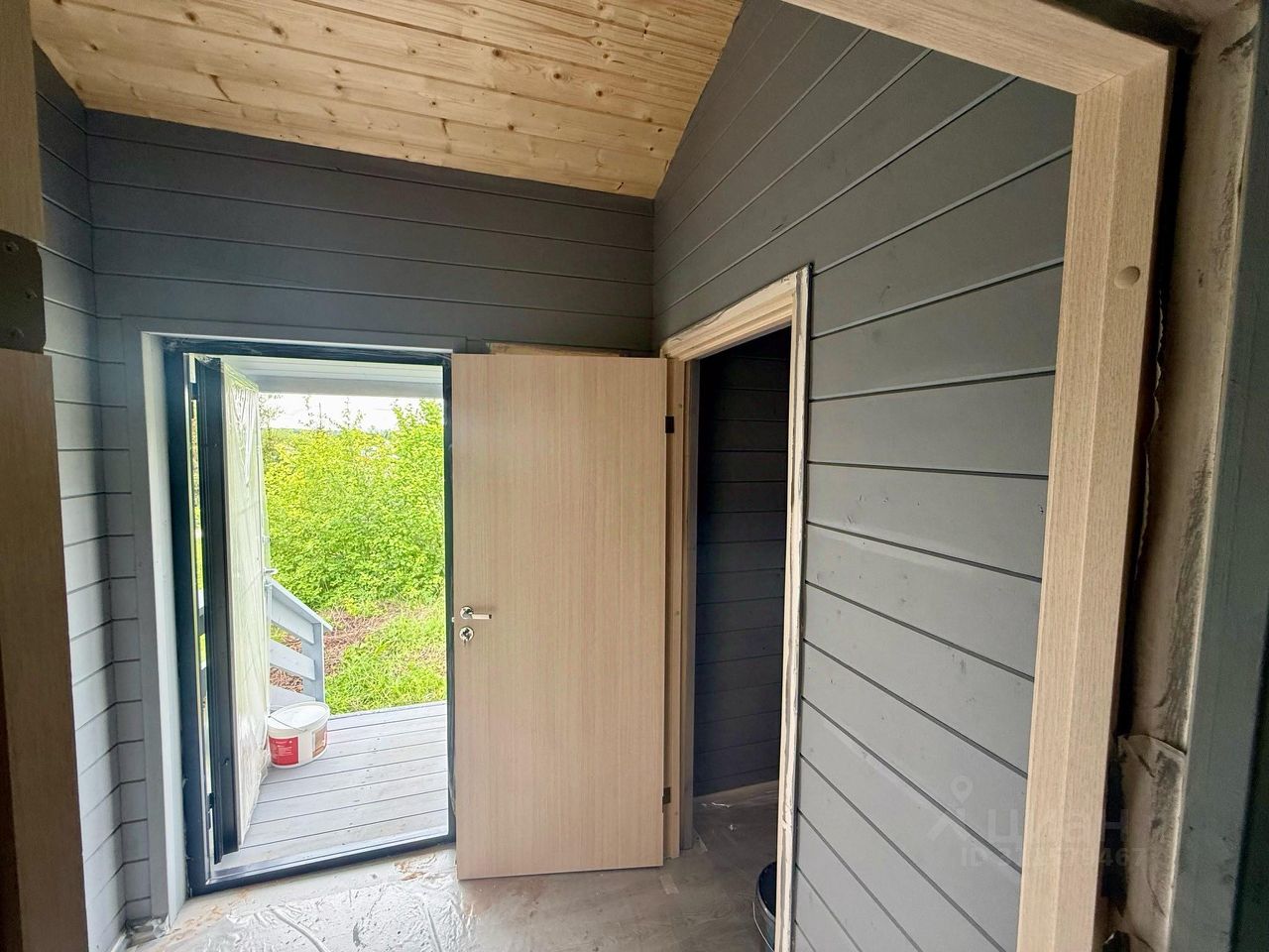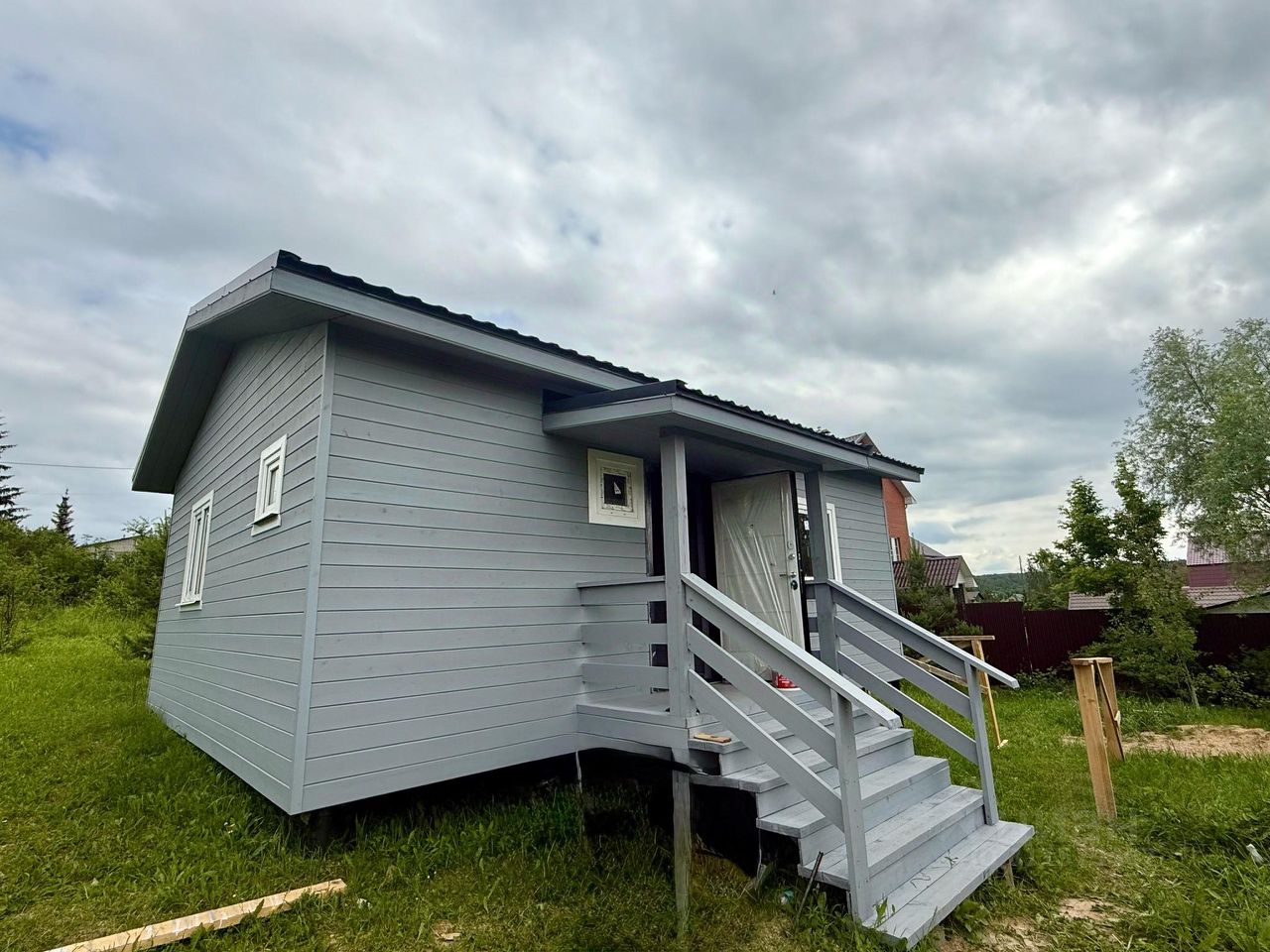 Дом: теплый, зимний, общей площадью 44, 6 кв.м, одноэтажный, кровля металлочерепица, стены обшиты вагонкой снаружи и внутри, утепление 150 мм, установлены ламинированные межкомнатные двери и утепленная металлическая входная дверь, на полу ламинат