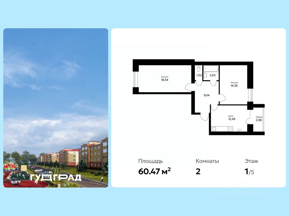 Общая площадь60,47 м2