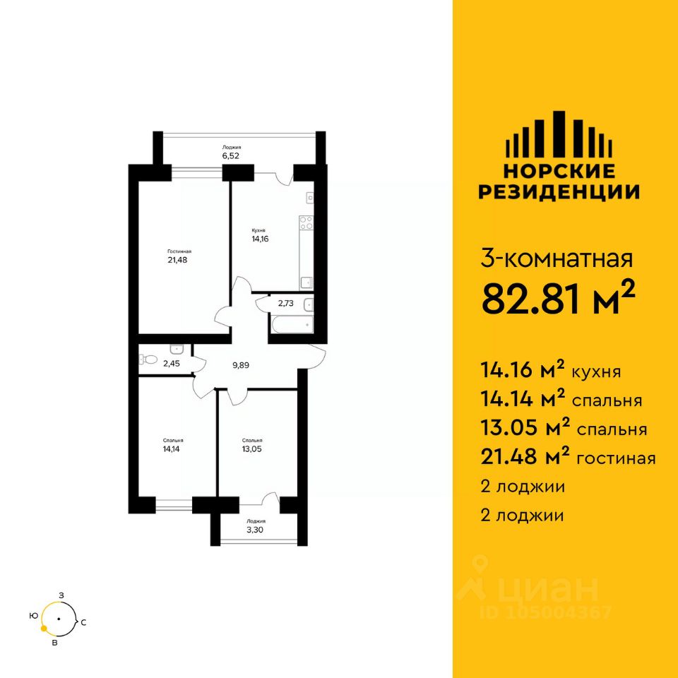 Общая площадь82,81 м2