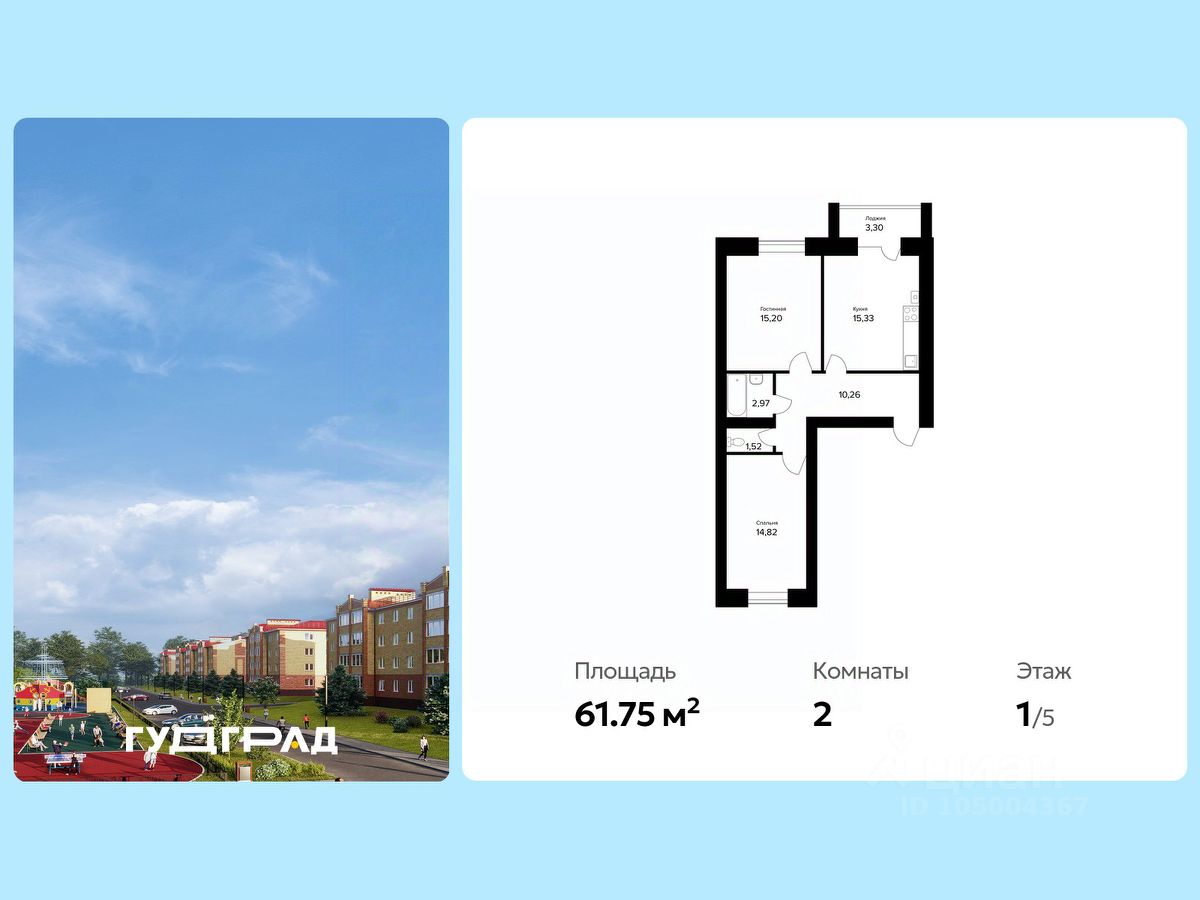 Общая площадь61,75 м2