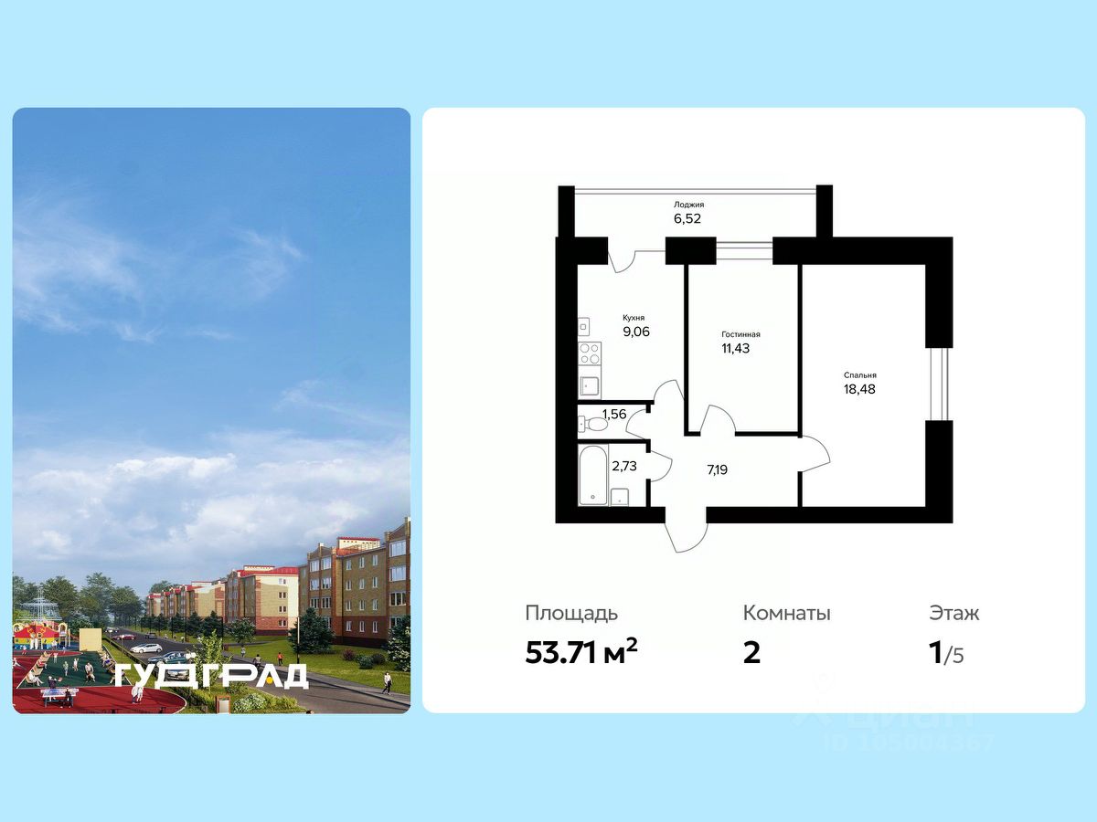 Общая площадь53,71 м2