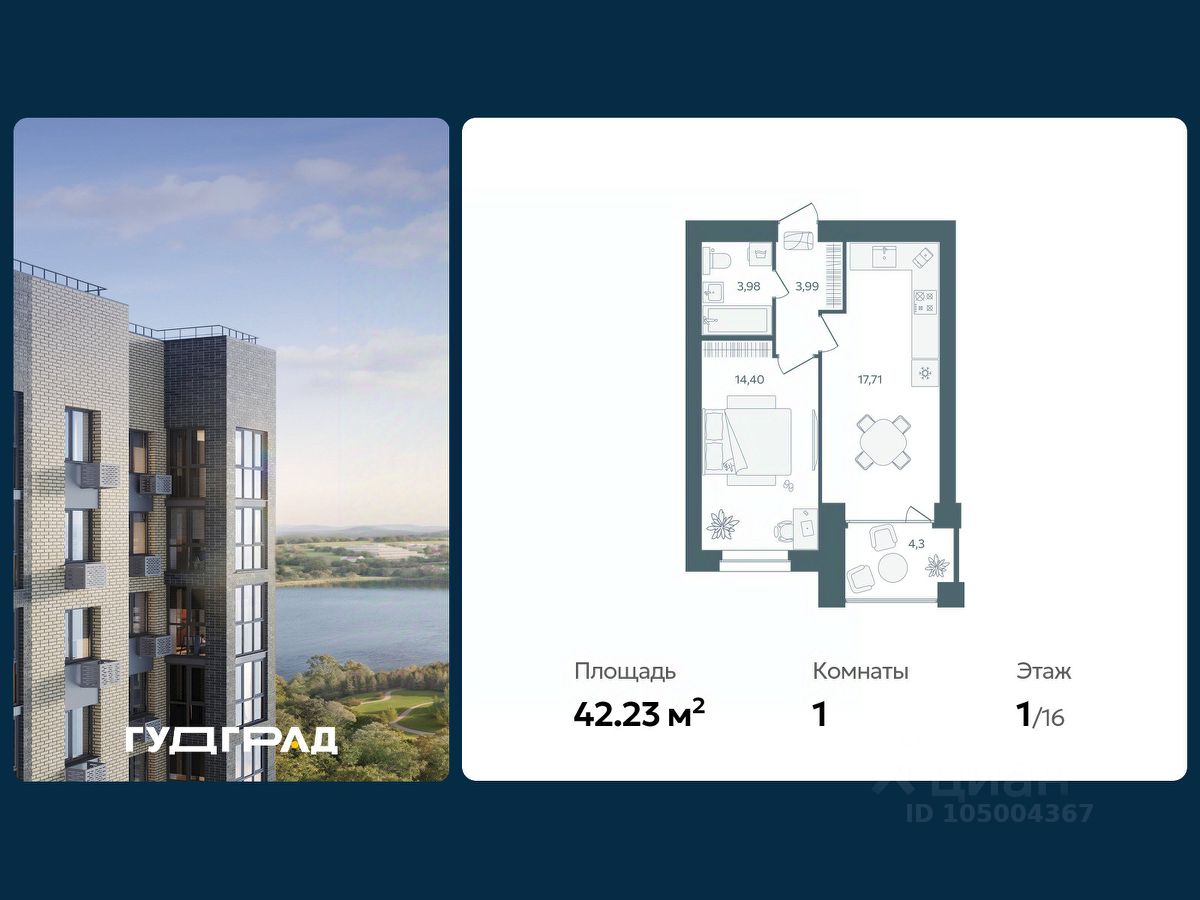 продам 1-к квартира5 701 050 ₽