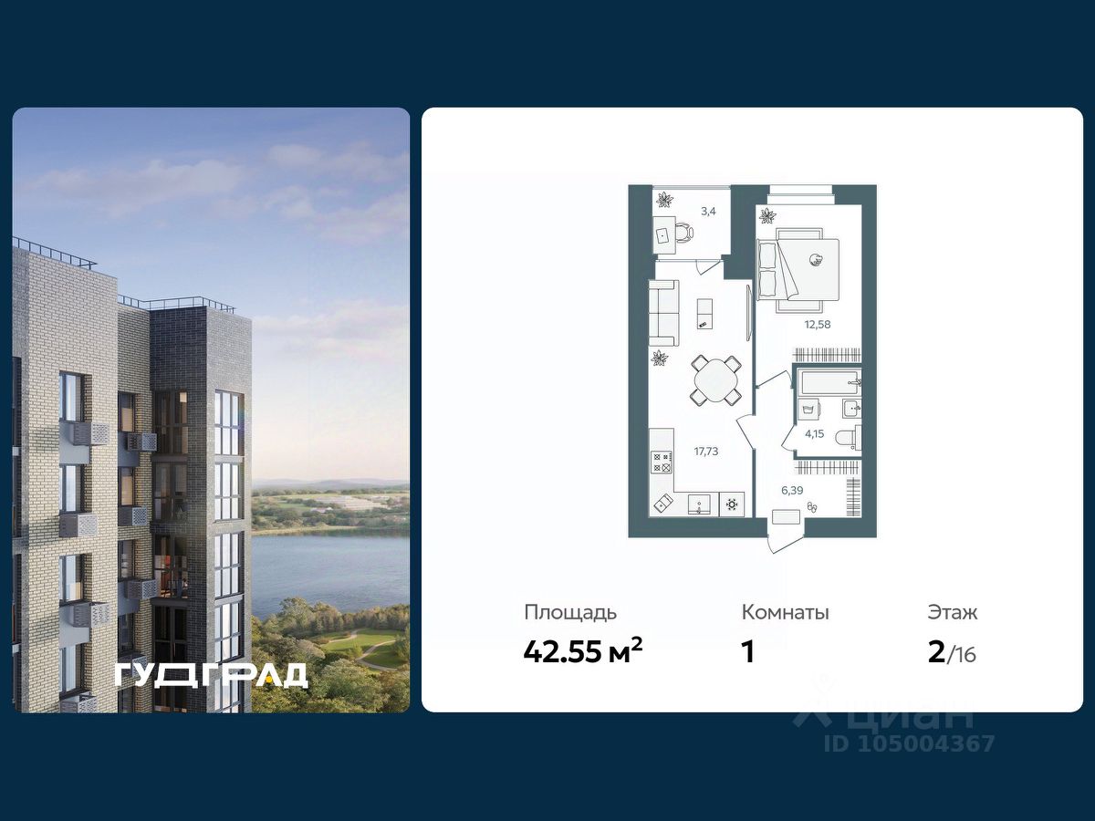 продам 1-к квартира5 744 250 ₽