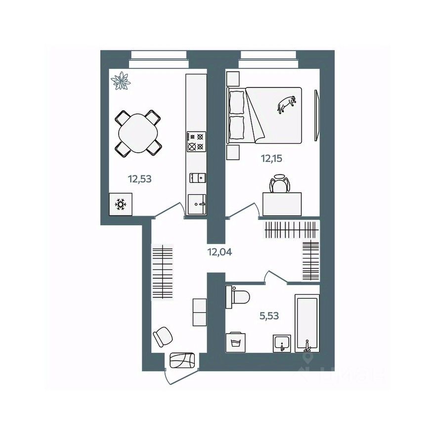 Жилая площадь12,2 м2