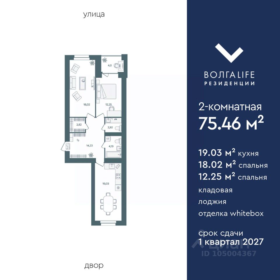 Доступна к покупке с беспроцентной рассрочкой от застройщика просторная двухкомнатная квартира 75,46 м² в новом, современном ЖК из керамического кирпича рядом с Павловским парком. В доме — бассейн, фитнес-клуб. Данные планировки квартир на верхних этажах с видом на Волгу.