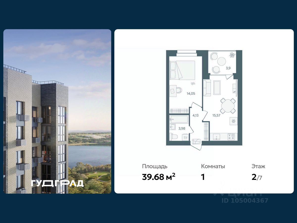 Продаётся 1-комнатная квартира в строящемся доме (Дом 2), срок сдачи: III-кв. 2026, общей площадью 39.68 кв.м., на 7 этаже. При планировании участка применена концепция ''двор без машин''.Внутренняя часть двора -благоустроенная территория для занятий спортом, отдыха, игр. В каждой секции дома предусмотрены проходные подъезды, через которые жители дома будут попадать и на дворовую территорию и к дорогам и парковкам, расположенным с внешней стороны. Вход в подъезды с уровня земли. Каждый подъезд дома имеет лифт грузоподъемностью 630 кг. При разработке планировок квартир применяется зарекомендовавшая себя на практике концепция квартиры с большой комнатой, включающей в себя зоны гостиной, кухни и столовой. Эта комната является своеобразным аналогом общественного пространства для членов семьи. Спальни и детские комнаты запроектированы меньшего размера, но с полным учетом всех необходимых функциональных зон и сценариев. Таким образом в каждой, даже однокомнатной квартире есть обособленные дневное общественное и ночное приватное пространства. В цокольном этаже дома будут устроены кладовые помещения для хранения площадью от 5 до 15 кв.м. Попасть в кладовую можно из подъезда. Кладовые предназначены для хранения крупногабаритных вещей: автомобильных покрышек, лыж, санок, велосипедов, детских колясок. Собственная кладовая поможет вам разгрузить вашу квартиру от сезонных вещей, и использовать лоджию и свободное пространство квартиры для уютного отдыха , а не для хранения крупногабаритных вещей. На фасадах домов будут смонтированы короба для установки наружных блоков кондиционеров.
