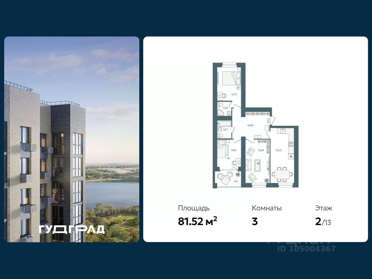 Продаётся 3-комнатная квартира в строящемся доме (Дом 2), срок сдачи: III-кв. 2026, общей площадью 81.52 кв.м., на 3 этаже. При планировании участка применена концепция ''двор без машин''.Внутренняя часть двора -благоустроенная территория для занятий спортом, отдыха, игр. В каждой секции дома предусмотрены проходные подъезды, через которые жители дома будут попадать и на дворовую территорию и к дорогам и парковкам, расположенным с внешней стороны. Вход в подъезды с уровня земли. Каждый подъезд дома имеет лифт грузоподъемностью 630 кг. При разработке планировок квартир применяется зарекомендовавшая себя на практике концепция квартиры с большой комнатой, включающей в себя зоны гостиной, кухни и столовой.
