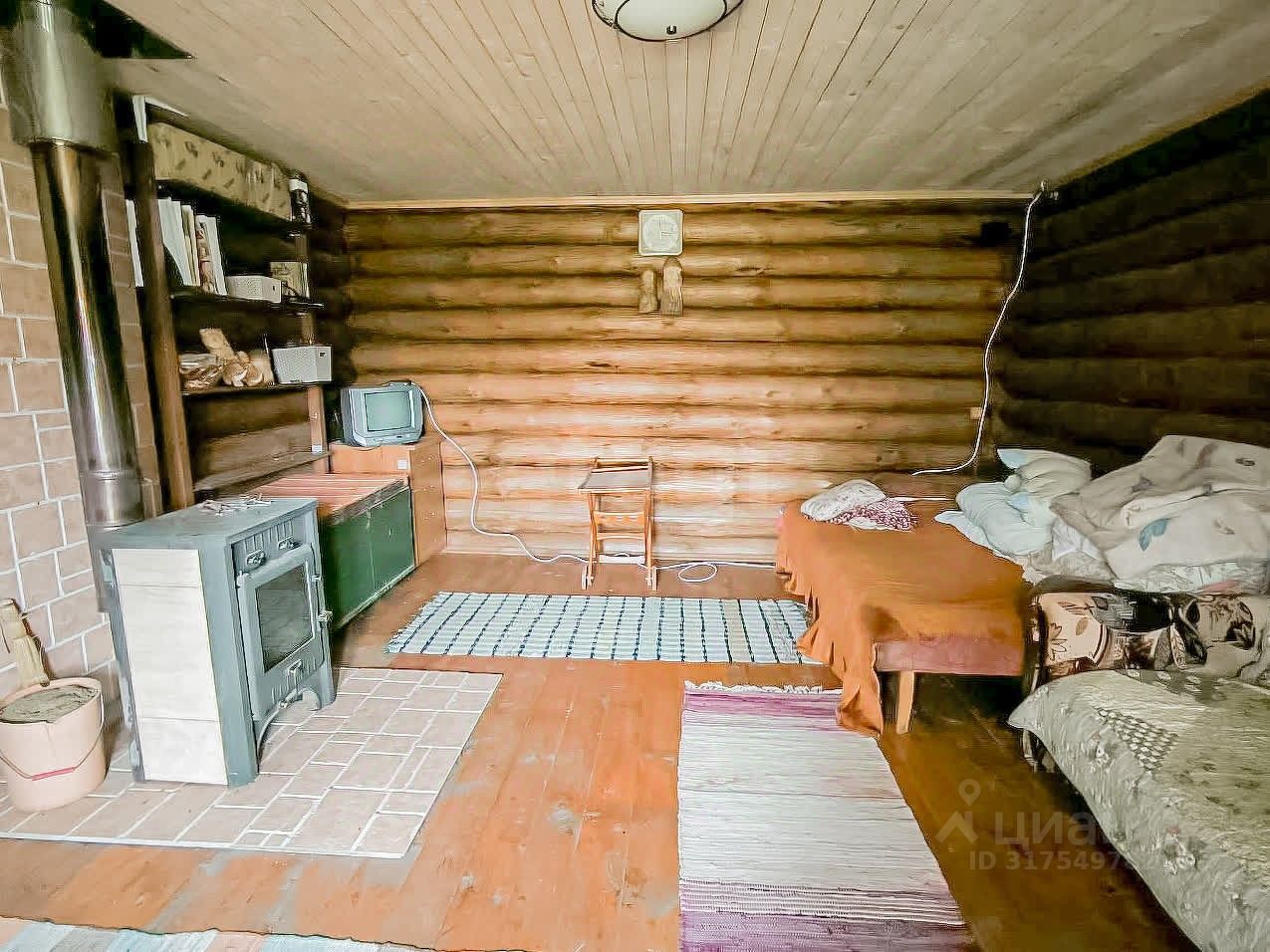 В комнате установлена печь-буржуйка. Канализация-выгребная яма, водоснабжение - колодец в деревне.