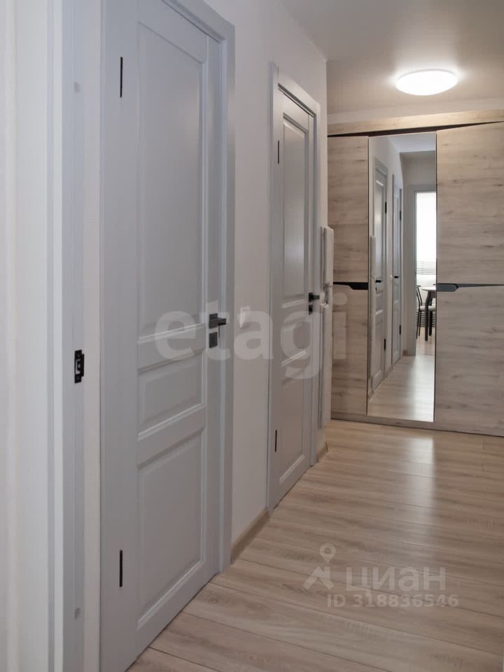 Двухкомнатная квартира площадью 56,5 кв. м расположена на 6 этаже девятиэтажного кирпичного дома, построенного в 2015 году застройщиком ''Медик''. Объект приобретен у застройщика, не угловой, с качественной теплоизоляцией. Планировка рациональная: комнаты раздельные, окна выходят на разные стороны, что обеспечивает комфортный микроклимат — летом нет духоты, при этом сохраняется хорошая освещенность. В квартире выполнен современный ремонт: заменены стояки в ванной, сделано зонирование в зале с выделением спальной зоны, установлены натяжные потолки и новые межкомнатные двери (в комнатах — двери-купе). Санузел раздельный, отделан плиткой, в туалете установлен водонагреватель для бесперебойного горячего водоснабжения. Дополнительные удобства включают кладовую (используется как гардеробная), застекленный и утепленный балкон, систему фильтрации воды. Кухонный гарнитур в подарок
